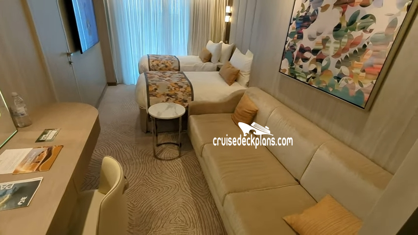 Sun Princess Cabana Mini-Suite cabin number 10519 ACTUAL videos and/or pictures, floor plans, diagrams and detailed features including a deck image of the actual location on the Sun Princess ship for cabin 10519. Cruisedeckplans.com has 75,640 different (staterooms) cabins that have actual cabin pictures and/or cabin videos taken by real cruisers. That is plenty of coverage to provide you with a good sampling of all the different cabins on cruise ships. Take a minute and notice the breadcrumb menu above. This is a quick easy way to navigate our website. You can also use the menu above for menu items specific to the Sun Princess cruise ship.