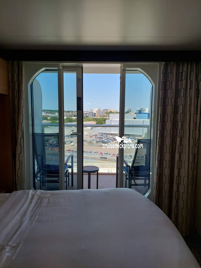 2C (was D1) balconies range from 55 to 119 square feet. Cabins 6254, 6258, 6654, 6658, 7254, 7258, 7654, 7658 have a chair instead of sofa and are 177 square feet with 82 square feet balconies. Category 1E and 2E (was DO) and 2F (was SB) is obstructed by view of top of lifeboat. Forward category 2E (was DO) on deck 7 and deck 8 is obstructed by steel frame that forms porthole opening. Some cabins have sofa near the balcony and others have bed near the balcony.