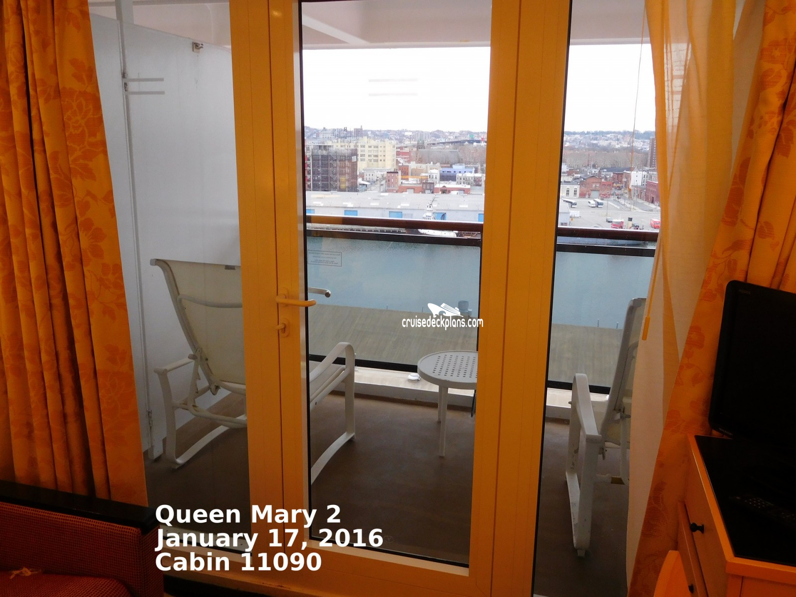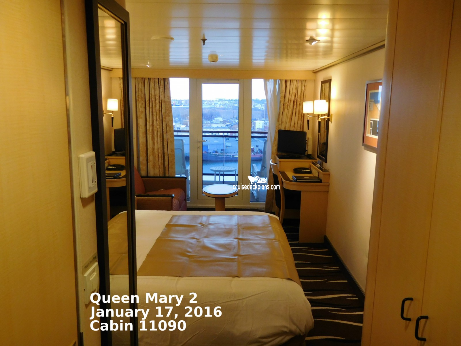 Queen Mary 2 Balcony cabin number 11090 ACTUAL videos and/or pictures, floor plans, diagrams and detailed features including a deck image of the actual location on the Queen Mary 2 ship for cabin 11090. Cruisedeckplans.com has 75,744 different (staterooms) cabins that have actual cabin pictures and/or cabin videos taken by real cruisers. That is plenty of coverage to provide you with a good sampling of all the different cabins on cruise ships. Take a minute and notice the breadcrumb menu above. This is a quick easy way to navigate our website. You can also use the menu above for menu items specific to the Queen Mary 2 cruise ship.