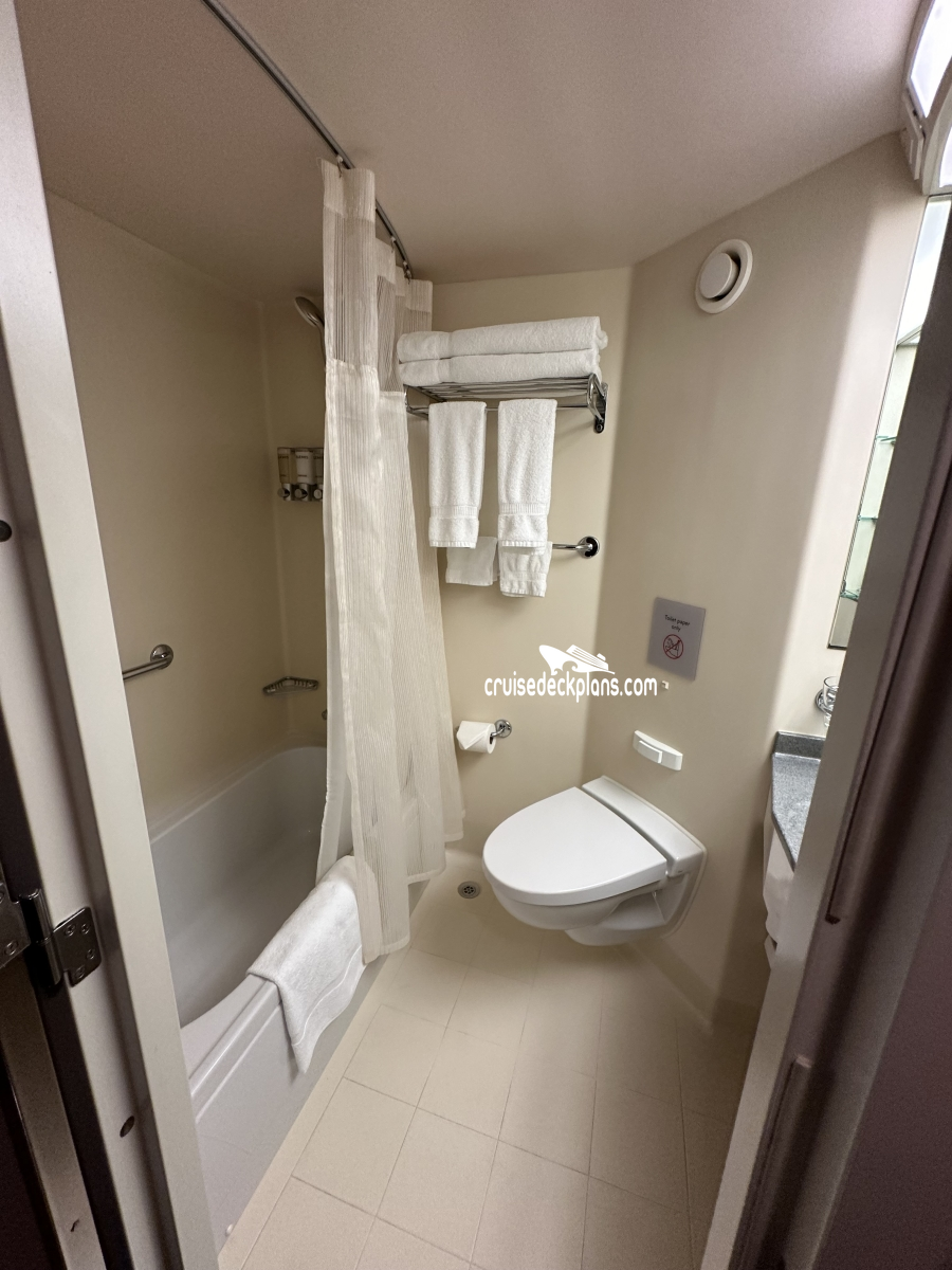 - Private bath with tub and/or shower (see symbols on deck plans)