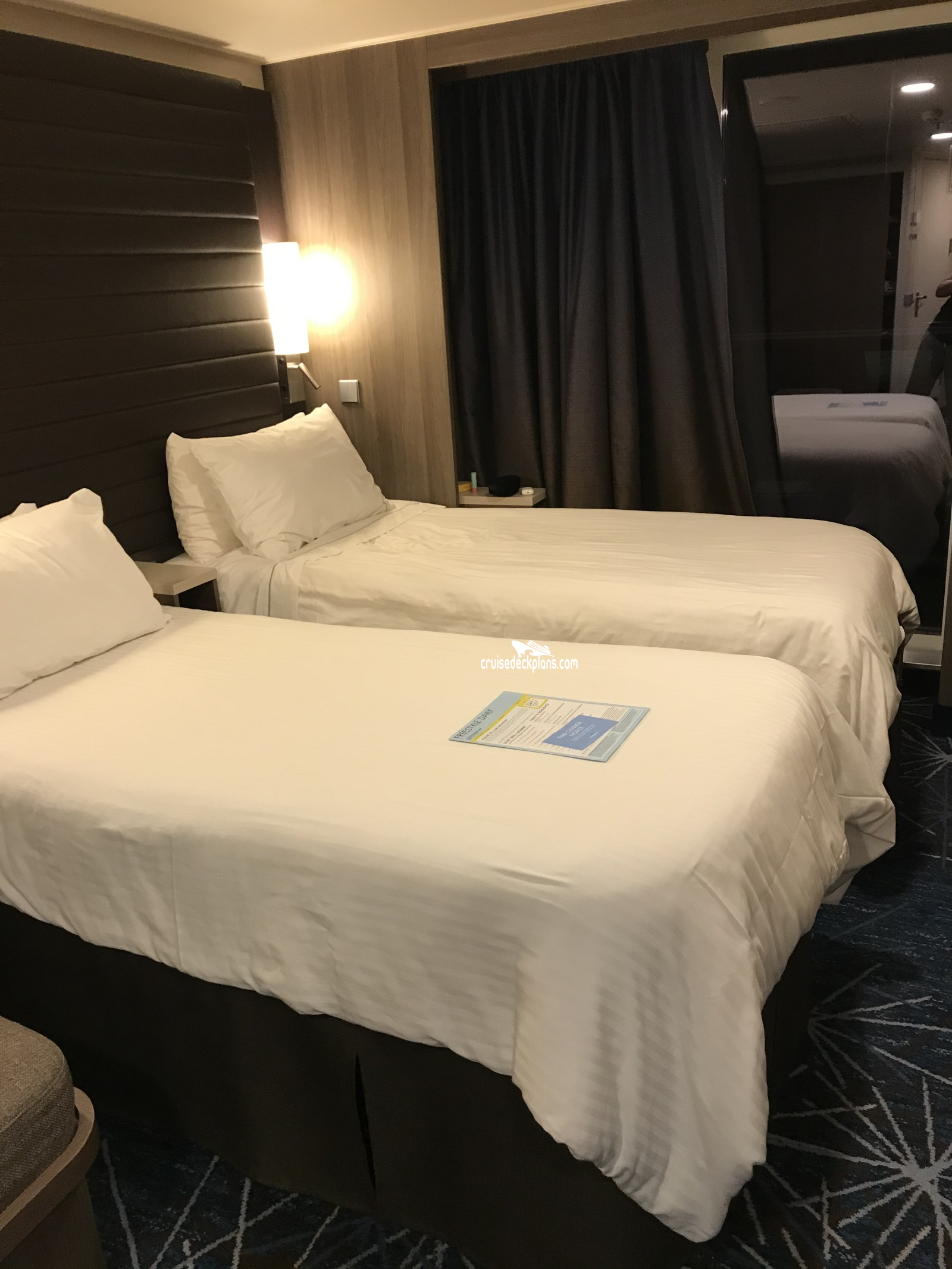 These are some actual stateroom pictures of cabin 11110 on the Norwegian Joy. Click on images below for larger image and slide show. The slide show will show the date the picture was uploaded to out website. This date is useful because Norwegian Joy typically will update its cabins every three to five years with new carpeting and decor. We will keep older pictures for you to compare the more recent photos to. The pictures are sorted by the newest ones first. Most of our cabin pictures are contributed by actual cruisers. We pay 50 cents for any that we use. You can upload your cabin photos HERE. Afer you are done looking at these photos and/or the videos below you can click here to select another cabin.