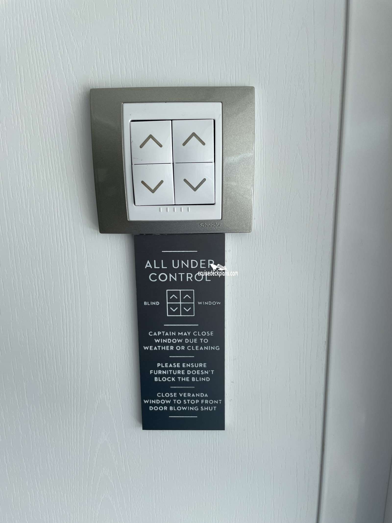 - Note: Passengers report that the infinite verandahs have the feel of a large open window rather than a balcony, in addition there is only a power shade on the verandah and will darken the whole room when closed and brighten the whole room when open. This is a concern if your room mate still wants to sleep.