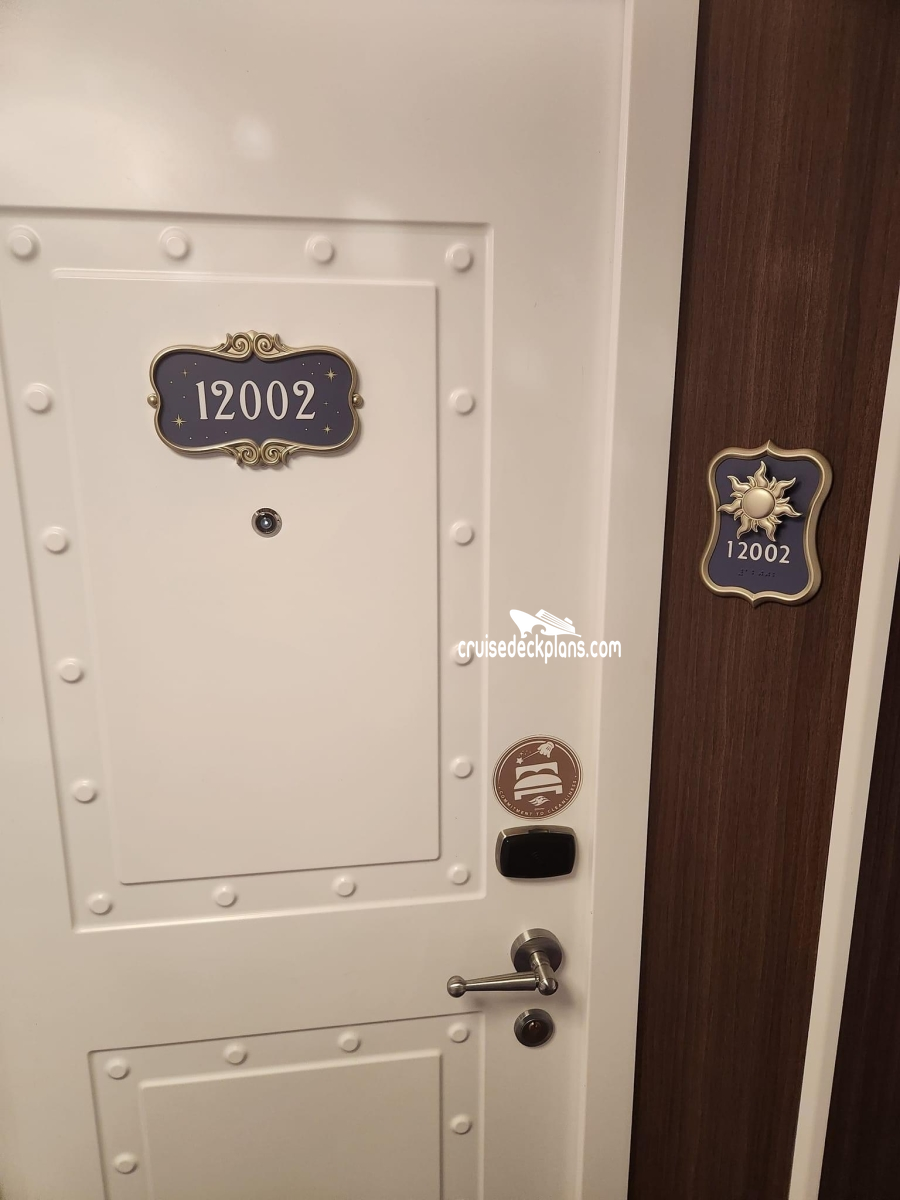 These are some actual stateroom pictures of cabin 12002 on the Disney Wish. Click on images below for larger image and slide show. The slide show will show the date the picture was uploaded to out website. This date is useful because Disney Wish typically will update its cabins every three to five years with new carpeting and decor. We will keep older pictures for you to compare the more recent photos to. The pictures are sorted by the newest ones first. Most of our cabin pictures are contributed by actual cruisers. We pay 50 cents for any that we use. You can upload your cabin photos HERE. Afer you are done looking at these photos and/or the videos below you can click here to select another cabin.