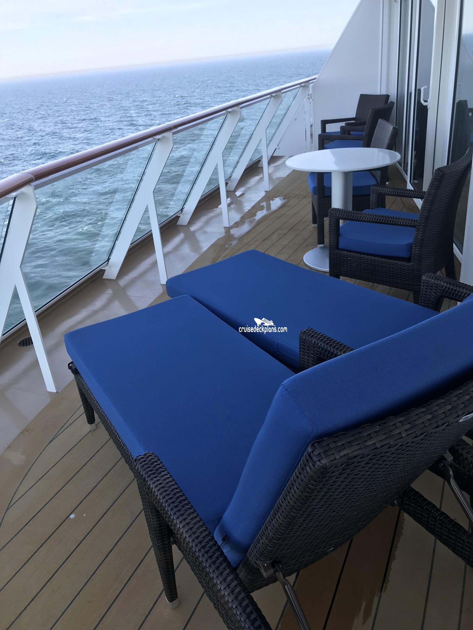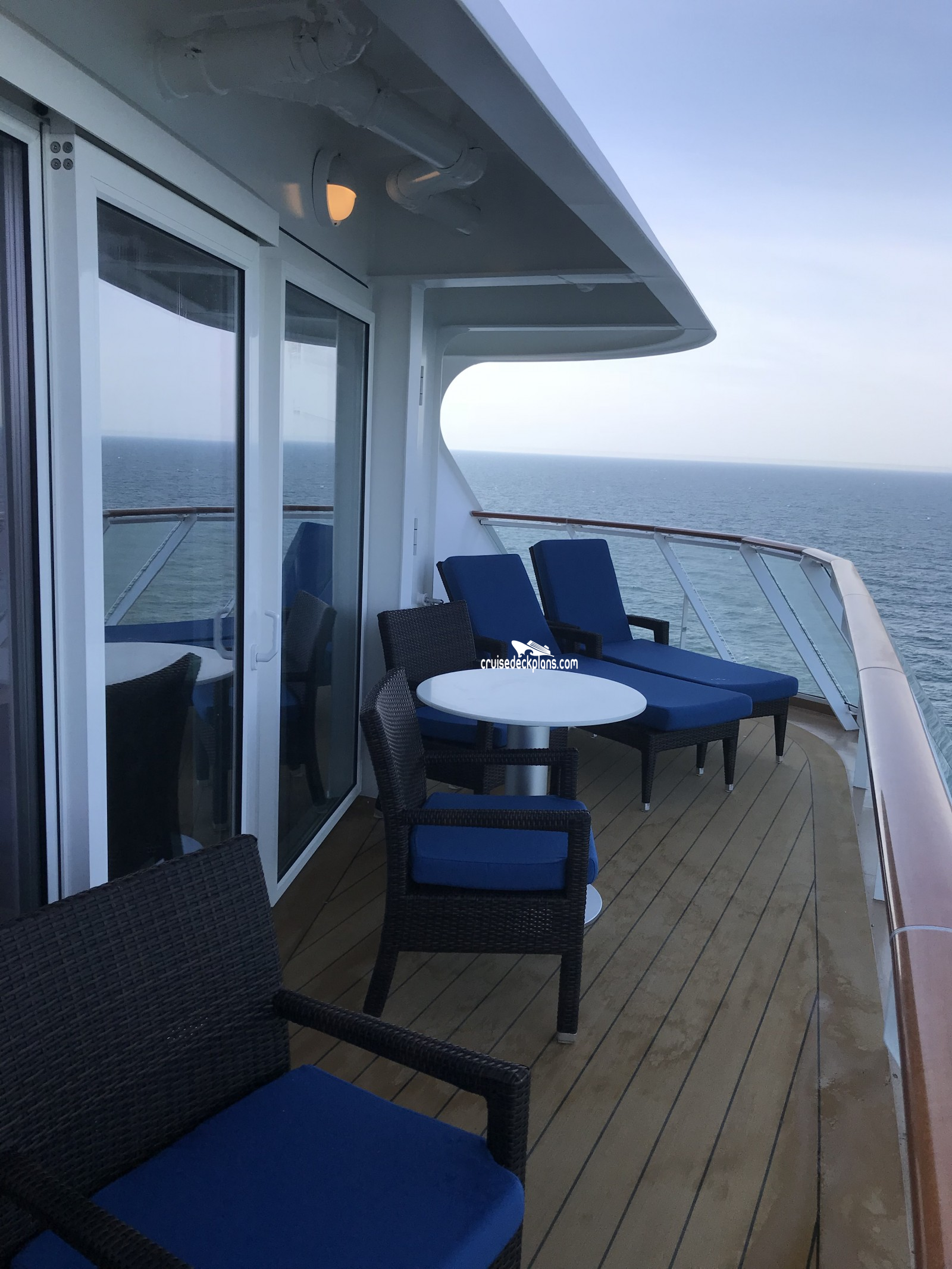 - Category H7 forward suites have porthole window in bedroom overlooking bow of ship and small side balcony