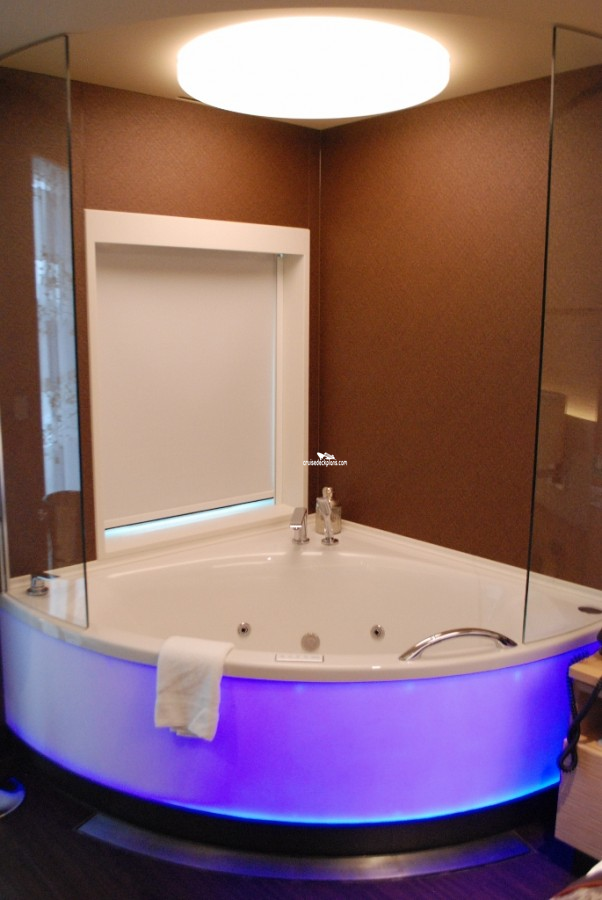 Cabins 14130, 14132, 14138, 14140, 14730, 14732, 14738, 14740 have a supporting pole near the whirlpool.