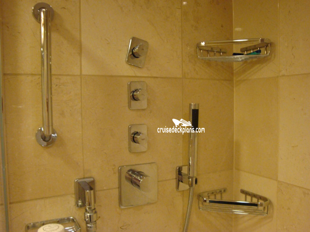 Staterooms 2130, 2132, 2134 and 2136 have roll-in showers, no bathtubs.