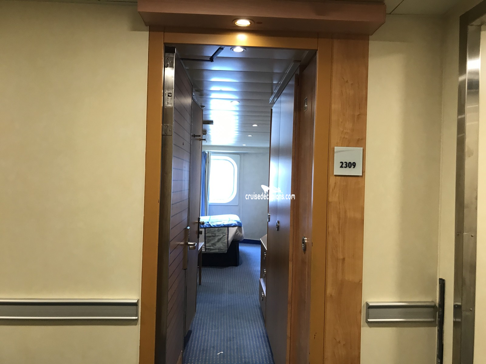 These are some actual stateroom pictures of cabin 2309 on the Carnival Radiance. Click on images below for larger image and slide show. The slide show will show the date the picture was uploaded to out website. This date is useful because Carnival Radiance typically will update its cabins every three to five years with new carpeting and decor. We will keep older pictures for you to compare the more recent photos to. The pictures are sorted by the newest ones first. Most of our cabin pictures are contributed by actual cruisers. We pay 50 cents for any that we use. You can upload your cabin photos HERE. Afer you are done looking at these photos and/or the videos below you can click here to select another cabin.