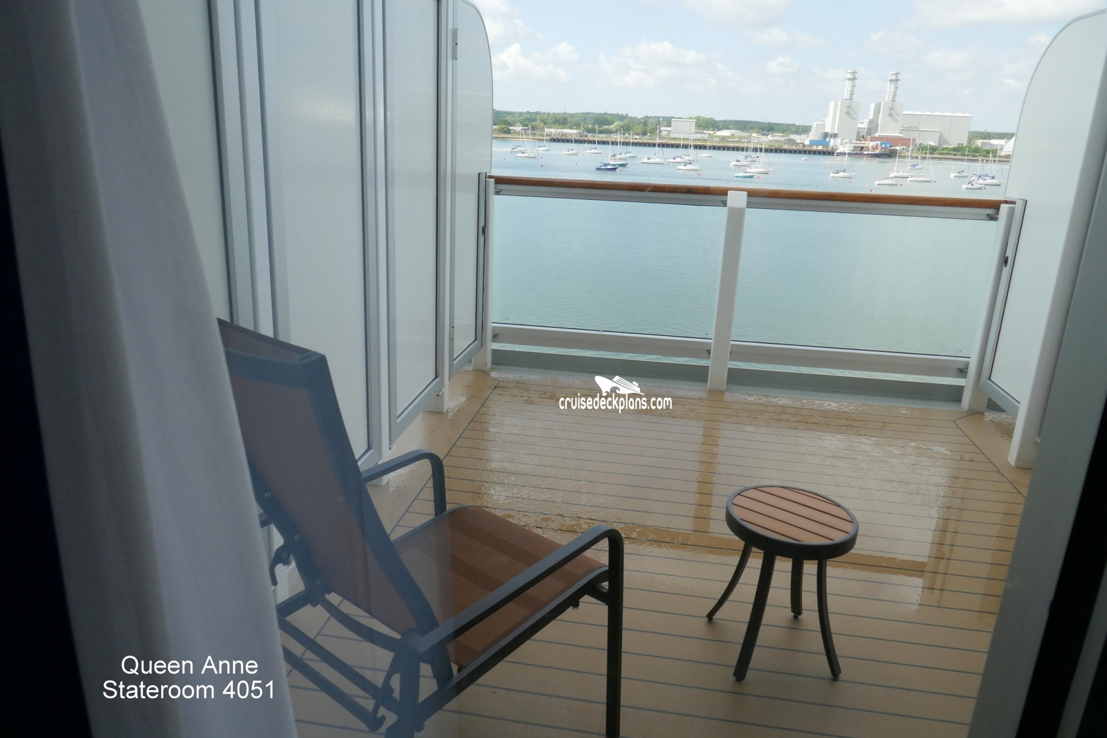 Queen Anne Balcony cabin number 4051 ACTUAL videos and/or pictures, floor plans, diagrams and detailed features including a deck image of the actual location on the Queen Anne ship for cabin 4051. Cruisedeckplans.com has 74,866 different (staterooms) cabins that have actual cabin pictures and/or cabin videos taken by real cruisers. That is plenty of coverage to provide you with a good sampling of all the different cabins on cruise ships. Take a minute and notice the breadcrumb menu above. This is a quick easy way to navigate our website. You can also use the menu above for menu items specific to the Queen Anne cruise ship.