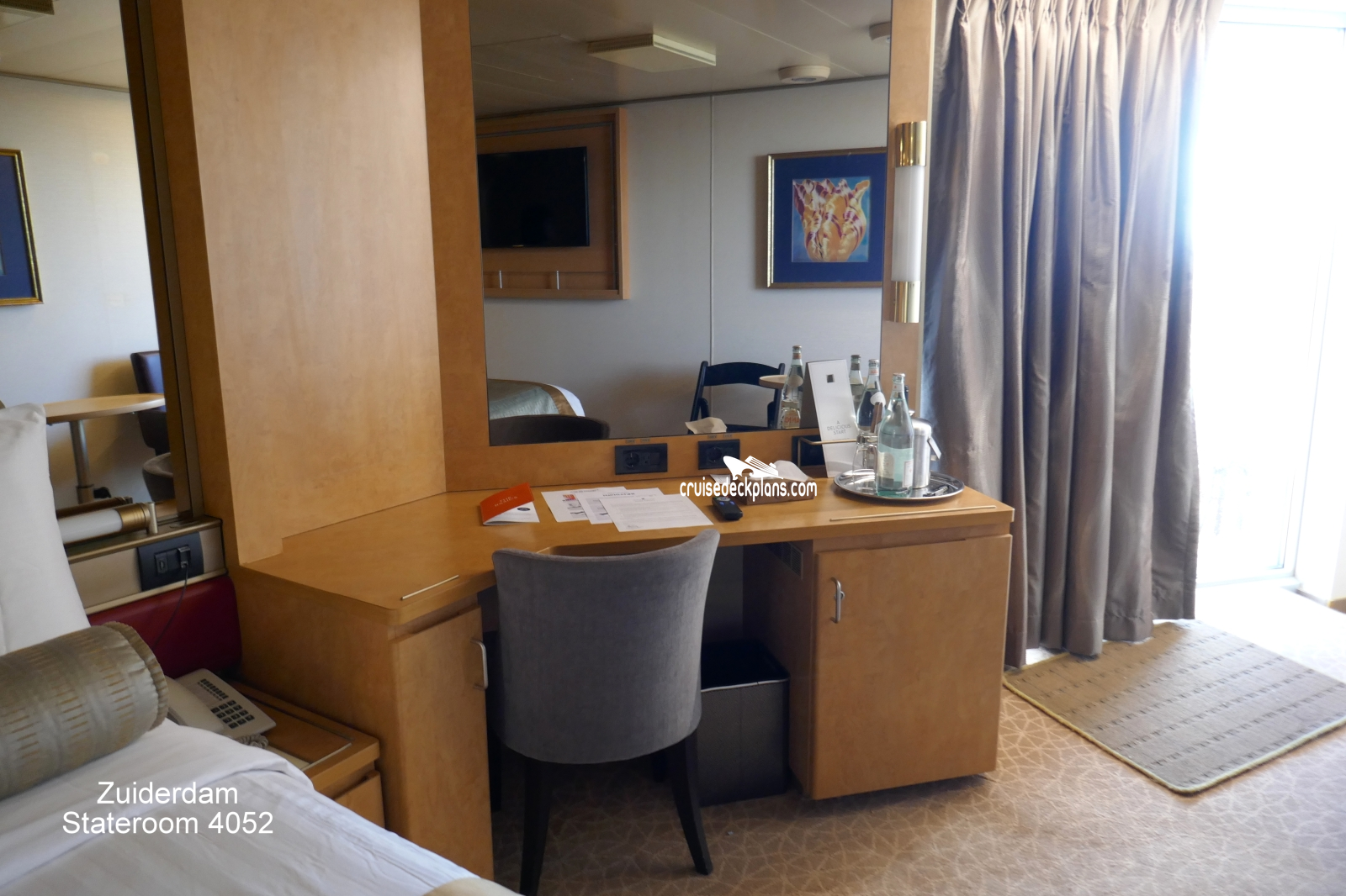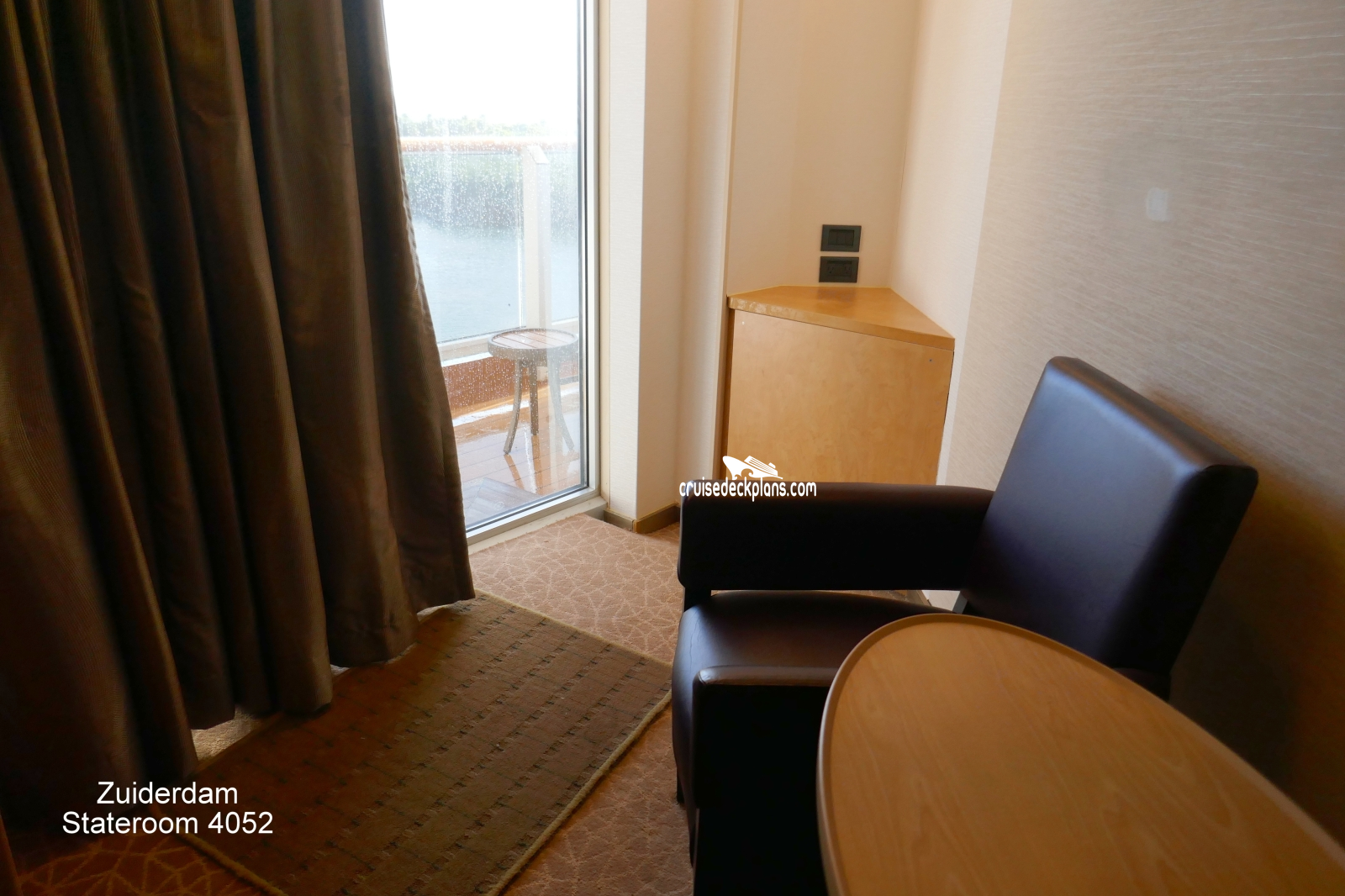 Zuiderdam Verandah cabin number 4052 ACTUAL videos and/or pictures, floor plans, diagrams and detailed features including a deck image of the actual location on the Zuiderdam ship for cabin 4052. Cruisedeckplans.com has 72,924 different (staterooms) cabins that have actual cabin pictures and/or cabin videos taken by real cruisers. That is plenty of coverage to provide you with a good sampling of all the different cabins on cruise ships. Take a minute and notice the breadcrumb menu above. This is a quick easy way to navigate our website. You can also use the menu above for menu items specific to the Zuiderdam cruise ship.