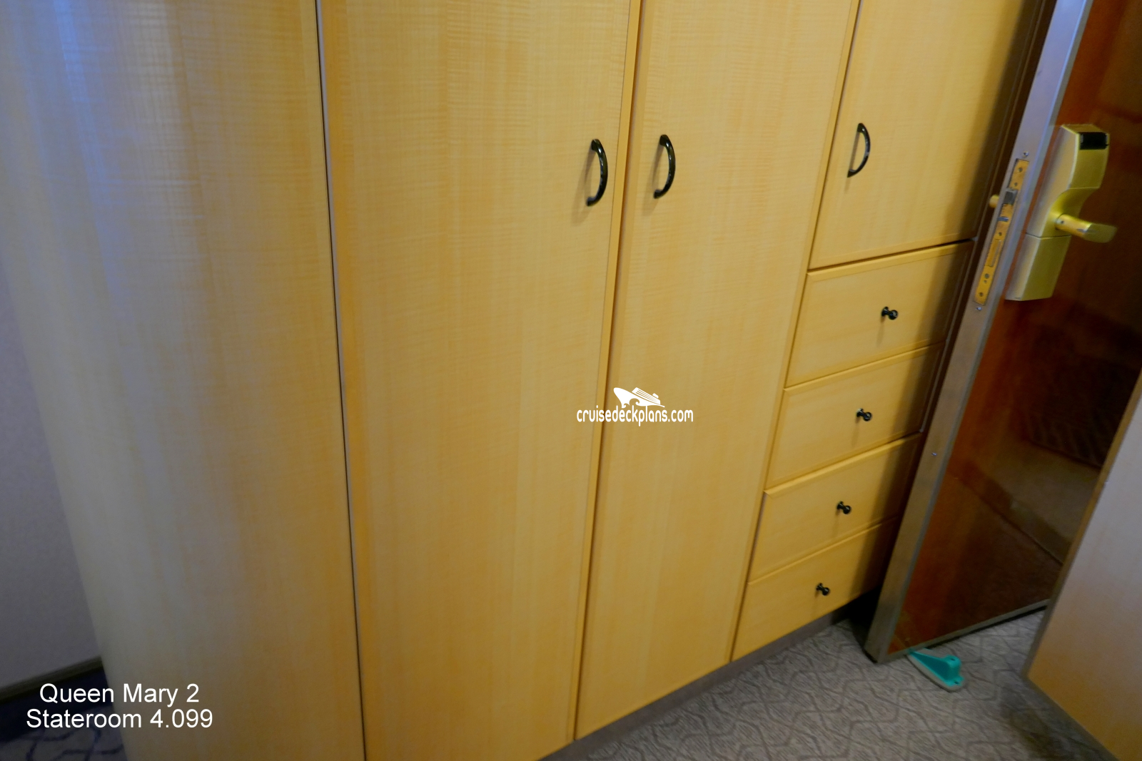 These are some actual stateroom pictures of cabin 4099 on the Queen Mary 2. Click on images below for larger image and slide show. The slide show will show the date the picture was uploaded to out website. This date is useful because Queen Mary 2 typically will update its cabins every three to five years with new carpeting and decor. We will keep older pictures for you to compare the more recent photos to. The pictures are sorted by the newest ones first. Most of our cabin pictures are contributed by actual cruisers. We pay 50 cents for any that we use. You can upload your cabin photos HERE. Afer you are done looking at these photos and/or the videos below you can click here to select another cabin.