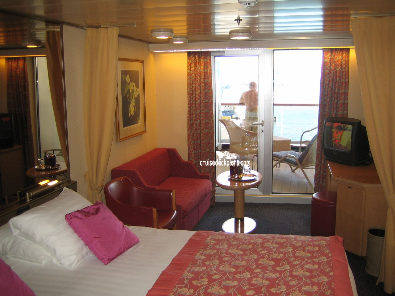 - Private bath with tub and/or shower (see symbols on deck plans)