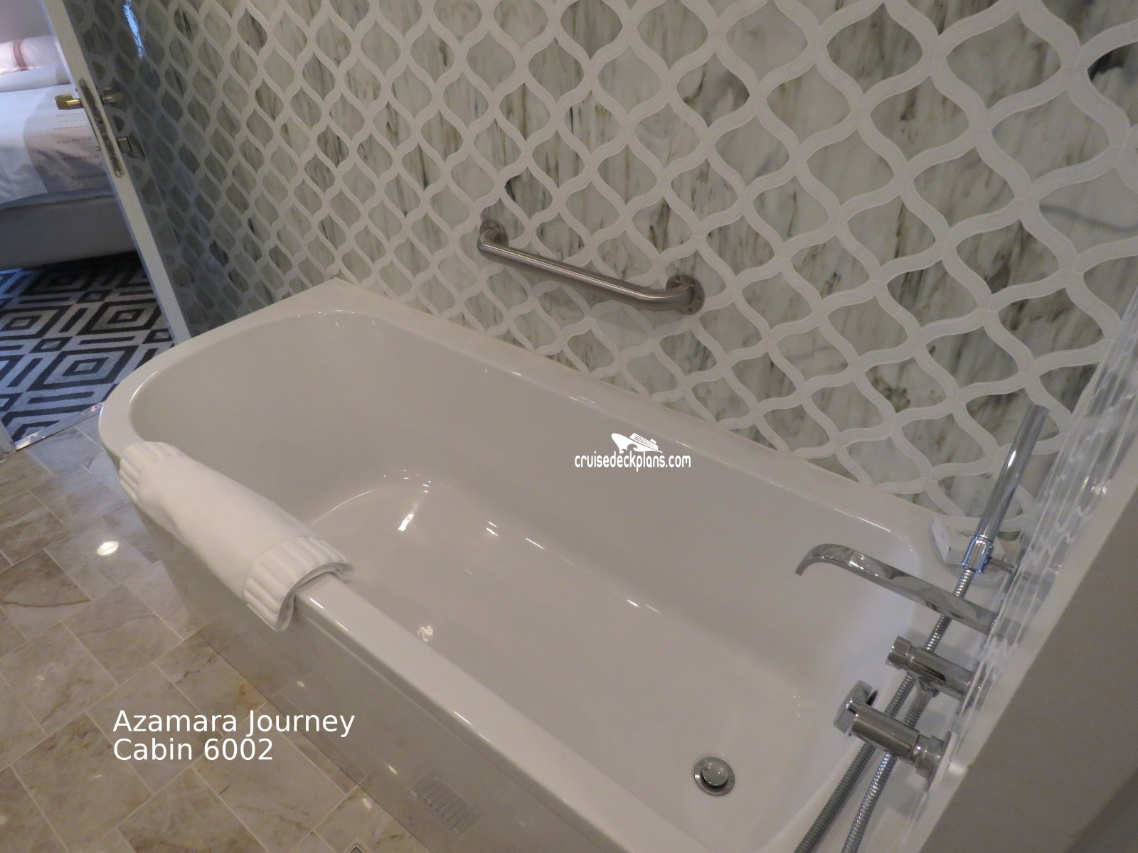 Azamara Journey Club Ocean Suite cabin number 6002 ACTUAL videos and/or pictures, floor plans, diagrams and detailed features including a deck image of the actual location on the Azamara Journey ship for cabin 6002. Cruisedeckplans.com has 73,705 different (staterooms) cabins that have actual cabin pictures and/or cabin videos taken by real cruisers. That is plenty of coverage to provide you with a good sampling of all the different cabins on cruise ships. Take a minute and notice the breadcrumb menu above. This is a quick easy way to navigate our website. You can also use the menu above for menu items specific to the Azamara Journey cruise ship.