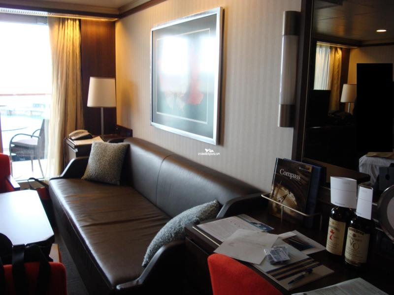 Complimentary Shoe Shine / Thick Cotton Robes / Pillow Menu / Signature Mariner's Dream bed with plush euro-top mattress and finely woven cotton linens / Lighted magnifying mirrors / Massage showerheads / Salon-quality hair dryer / Elemis Aromapure bath products / Flat-panel TV and DVD player / complimentary DVD library / Personalized cruise stationary / Umbrella / Bose docking station / Complimentary mimosas with in-suite breakfast / In-suite coffee maker and espresso machine. /