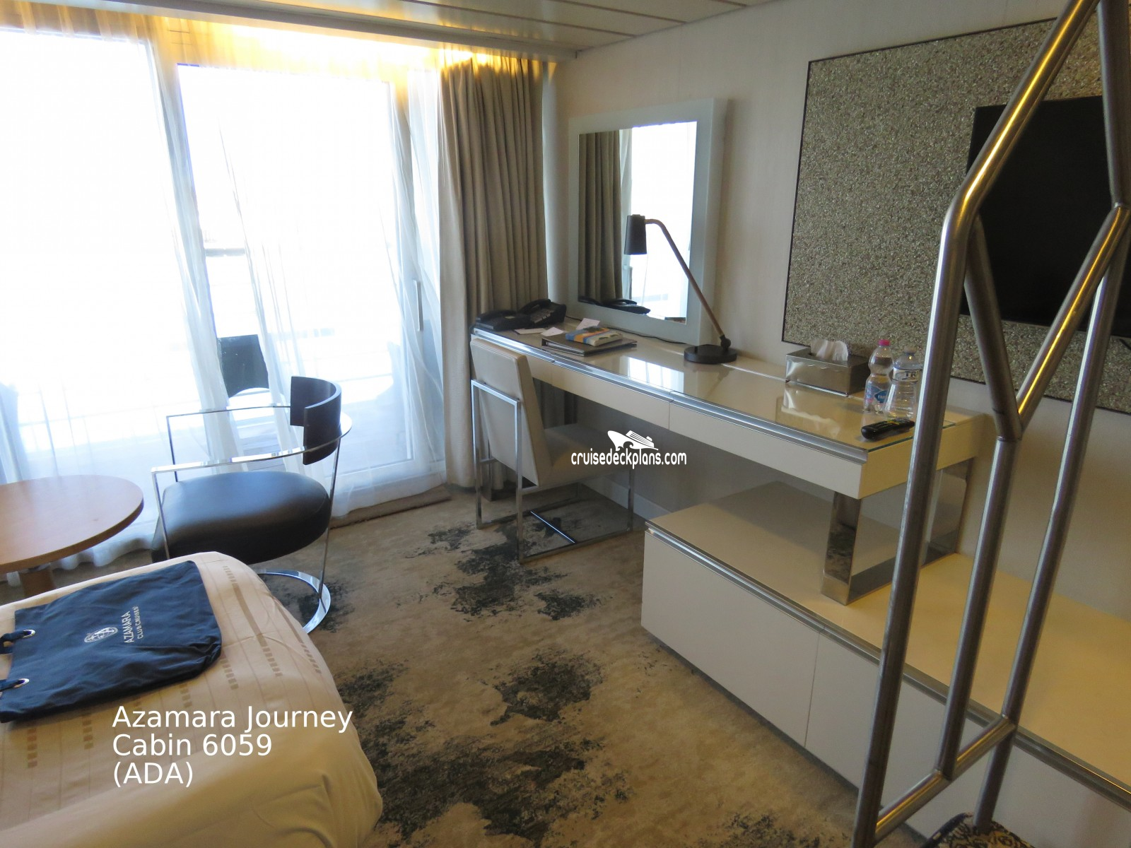 These are some actual stateroom pictures of cabin 6059 on the Azamara Journey. Click on images below for larger image and slide show. The slide show will show the date the picture was uploaded to out website. This date is useful because Azamara Journey typically will update its cabins every three to five years with new carpeting and decor. We will keep older pictures for you to compare the more recent photos to. The pictures are sorted by the newest ones first. Most of our cabin pictures are contributed by actual cruisers. We pay 50 cents for any that we use. You can upload your cabin photos HERE. Afer you are done looking at these photos and/or the videos below you can click here to select another cabin.