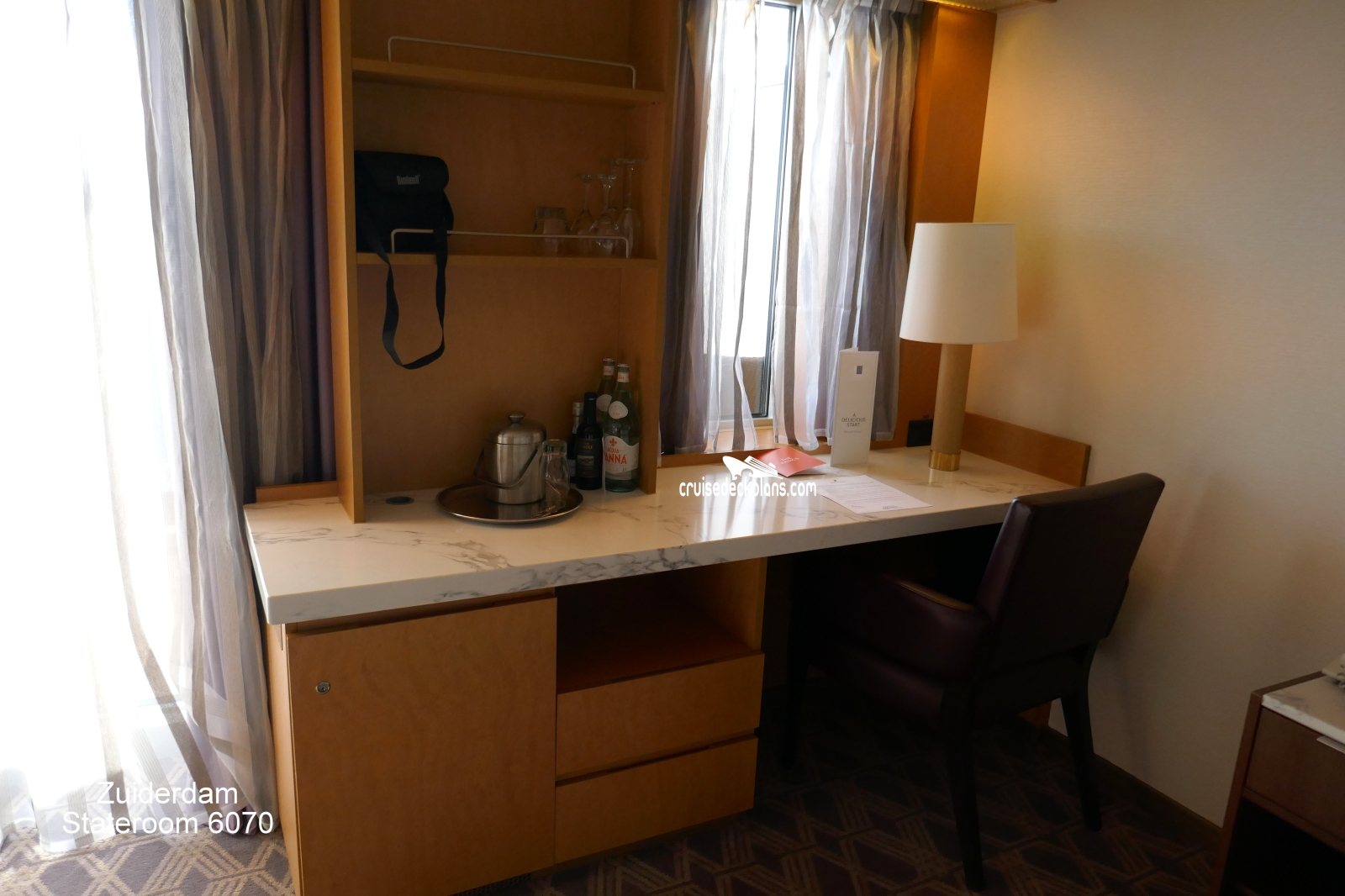 Zuiderdam Signature Suite cabin number 6070 ACTUAL videos and/or pictures, floor plans, diagrams and detailed features including a deck image of the actual location on the Zuiderdam ship for cabin 6070. Cruisedeckplans.com has 73,080 different (staterooms) cabins that have actual cabin pictures and/or cabin videos taken by real cruisers. That is plenty of coverage to provide you with a good sampling of all the different cabins on cruise ships. Take a minute and notice the breadcrumb menu above. This is a quick easy way to navigate our website. You can also use the menu above for menu items specific to the Zuiderdam cruise ship.