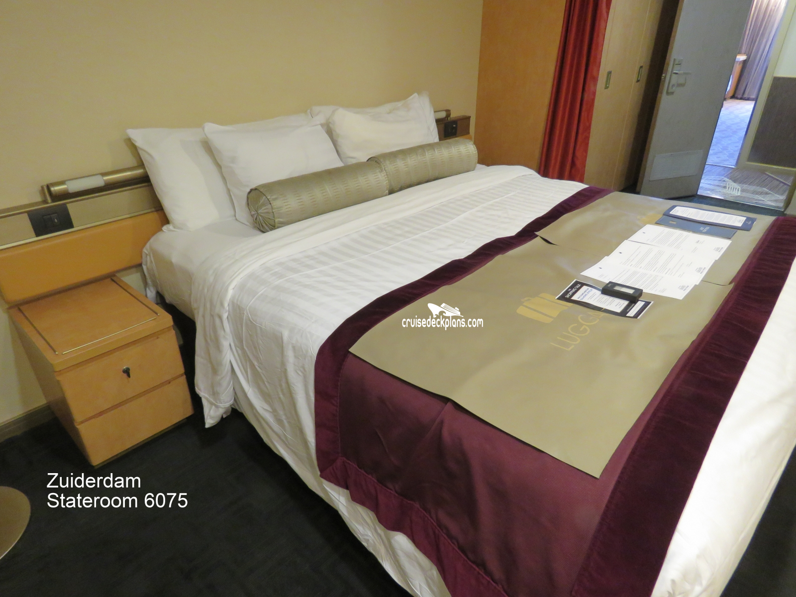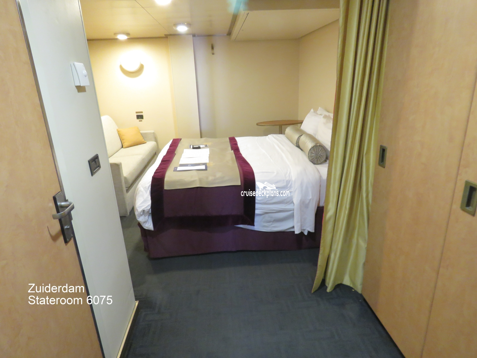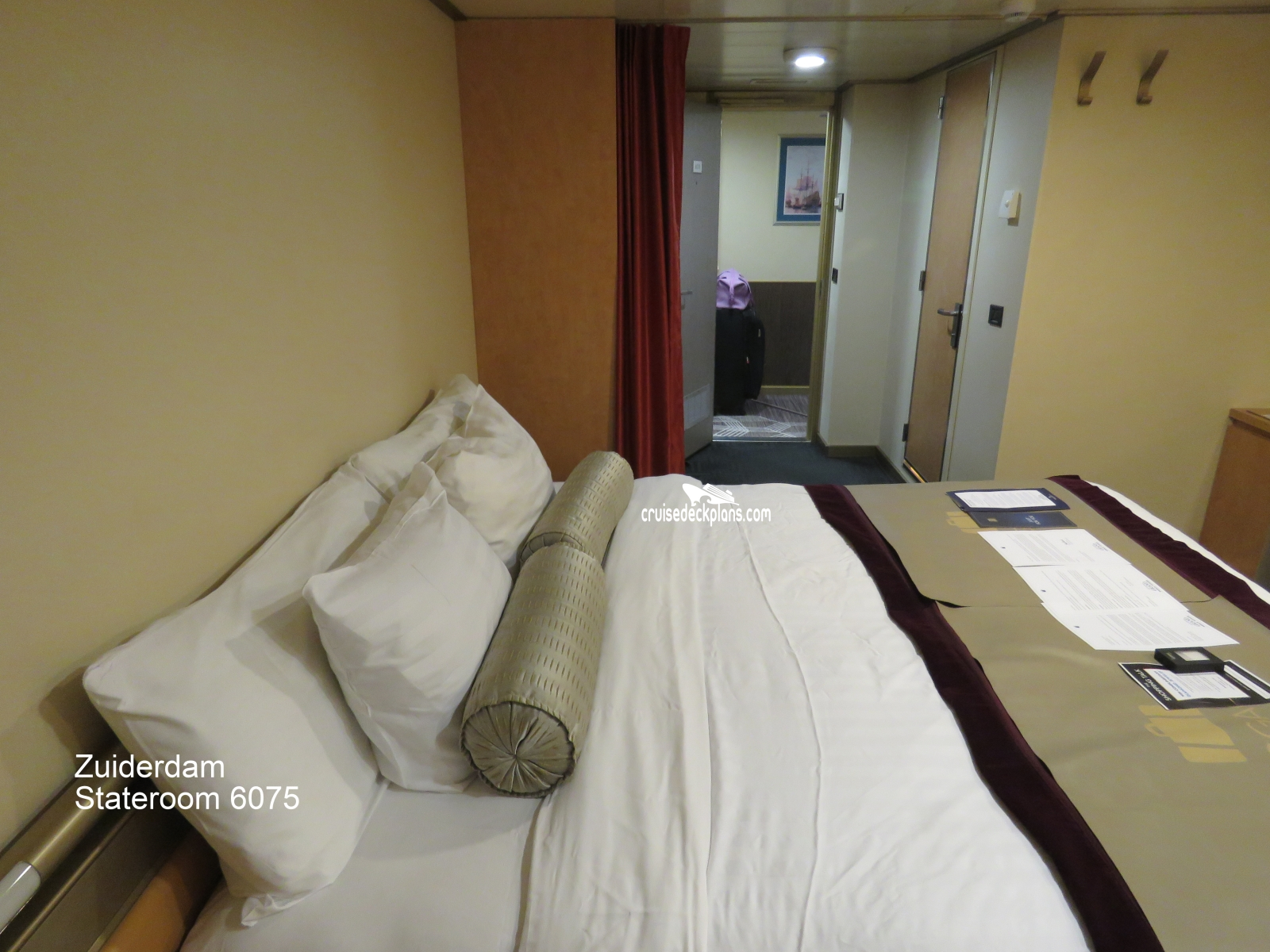 Zuiderdam Interior cabin number 6075 ACTUAL videos and/or pictures, floor plans, diagrams and detailed features including a deck image of the actual location on the Zuiderdam ship for cabin 6075. Cruisedeckplans.com has 72,924 different (staterooms) cabins that have actual cabin pictures and/or cabin videos taken by real cruisers. That is plenty of coverage to provide you with a good sampling of all the different cabins on cruise ships. Take a minute and notice the breadcrumb menu above. This is a quick easy way to navigate our website. You can also use the menu above for menu items specific to the Zuiderdam cruise ship.