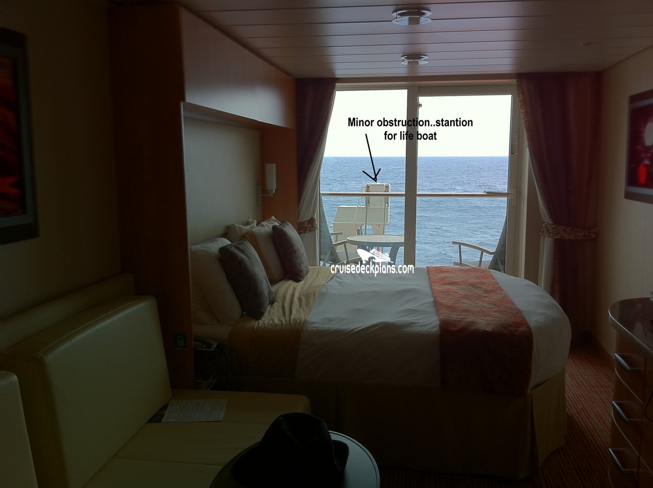 All category V3 cabins have obstructed view when looking down to the water and slightly obstructed horizon view. Category DV and V2 has unobstructed horizon view but obstructed views when looking down to the water (except some forward V2 cabins)