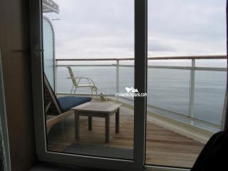 Sky suites 6145 & 6146 feature standard balcony doors. Stateroom 6102 has a smaller veranda that is semi-private.