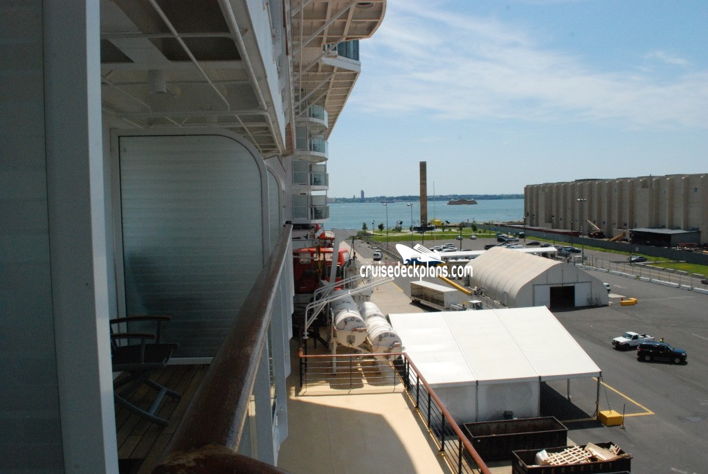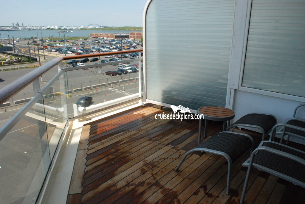 Sky suites 6145 & 6146 feature standard balcony doors. Stateroom 6102 has a smaller veranda that is semi-private.
