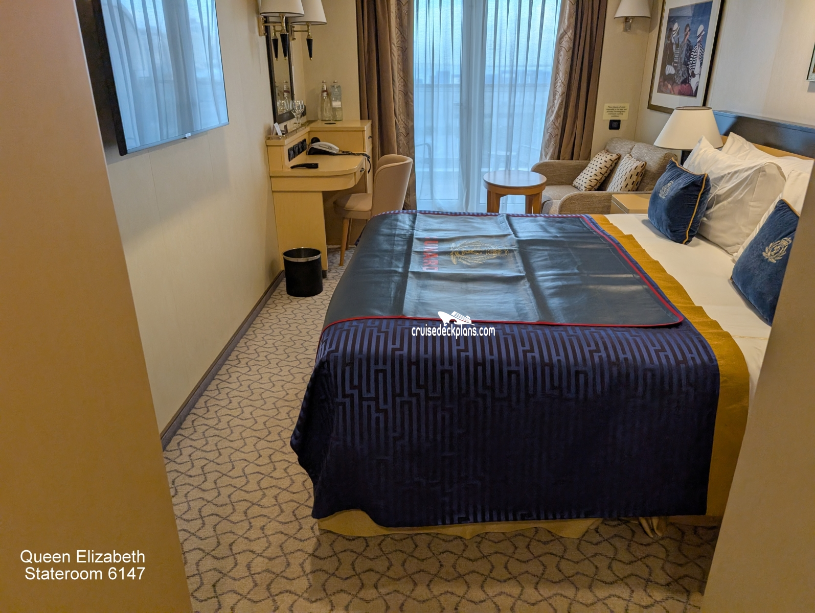 Queen Elizabeth Balcony cabin number 6147 ACTUAL videos and/or pictures, floor plans, diagrams and detailed features including a deck image of the actual location on the Queen Elizabeth ship for cabin 6147. Cruisedeckplans.com has 72,924 different (staterooms) cabins that have actual cabin pictures and/or cabin videos taken by real cruisers. That is plenty of coverage to provide you with a good sampling of all the different cabins on cruise ships. Take a minute and notice the breadcrumb menu above. This is a quick easy way to navigate our website. You can also use the menu above for menu items specific to the Queen Elizabeth cruise ship.