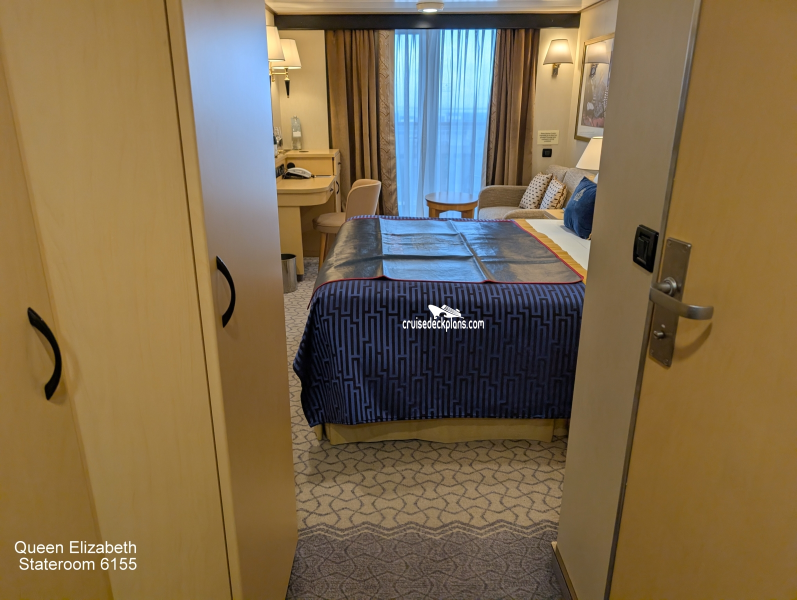 Scroll over cabin (stateroom) tiles below to click and watch actual stateroom videos of Queen Elizabeth cabin 6155. You can choose to watch the videos right on this page, or click to watch them on YouTube (will open in new window). When you are done viewing these videos and/or the cabin pictures above, you can click here to select another cabin. The date shown below is the date video was published. Use this to see decor changes. Keep in mind that stateroom cabins are typically updated once every three to five years. To save you time, Cruisedeckplans.com will spend hours every week finding more actual stateroom videos on YouTube.