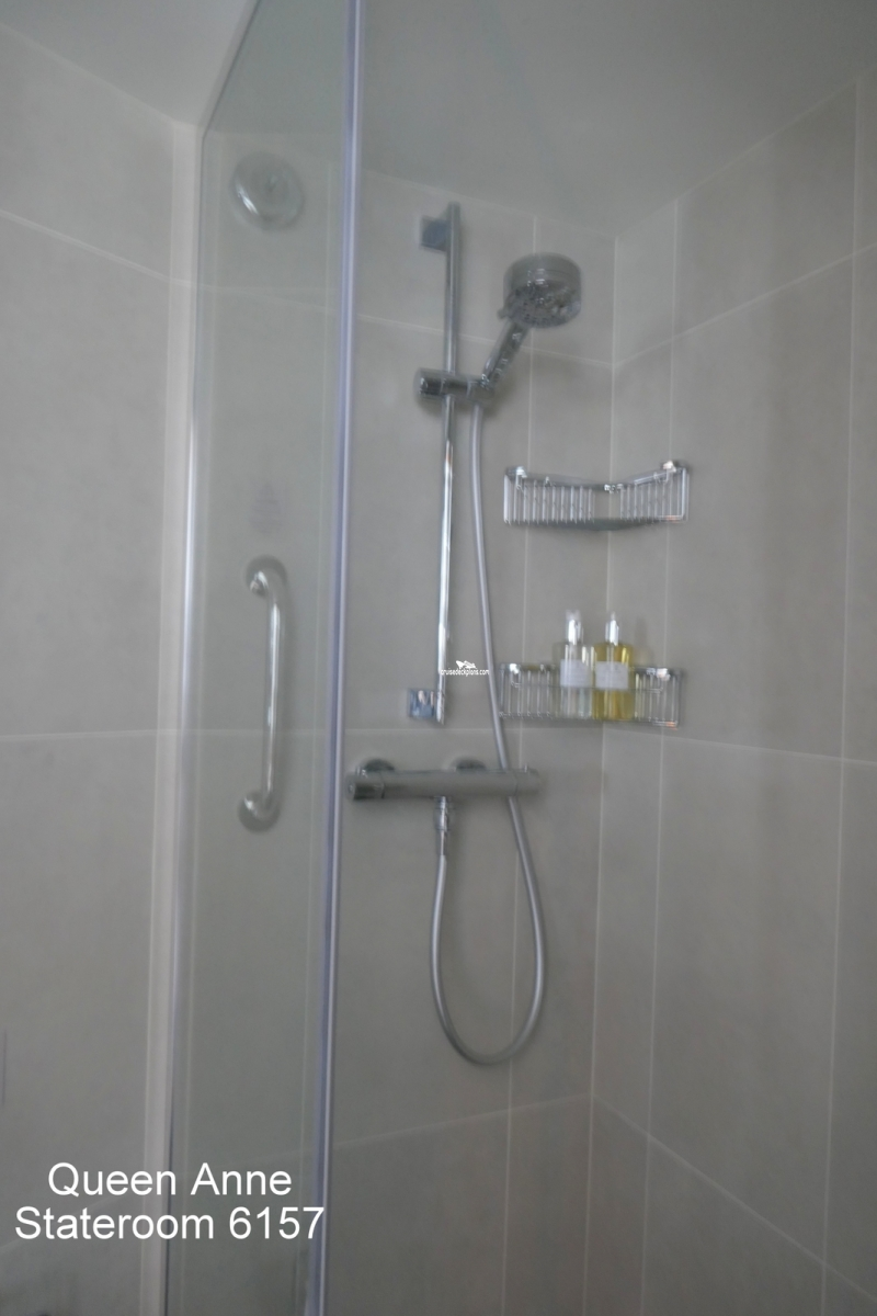These are some actual stateroom pictures of cabin 6157 on the Queen Anne. Click on images below for larger image and slide show. The slide show will show the date the picture was uploaded to out website. This date is useful because Queen Anne typically will update its cabins every three to five years with new carpeting and decor. We will keep older pictures for you to compare the more recent photos to. The pictures are sorted by the newest ones first. Most of our cabin pictures are contributed by actual cruisers. We pay 50 cents for any that we use. You can upload your cabin photos HERE. Afer you are done looking at these photos and/or the videos below you can click here to select another cabin.