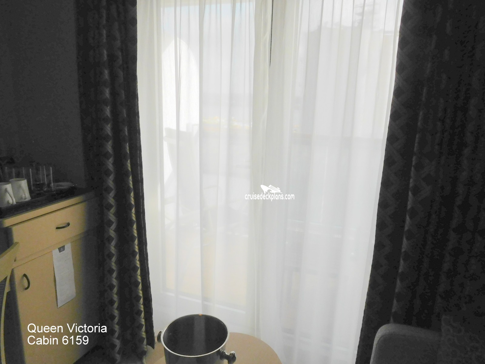 Queen Victoria Balcony cabin number 6159 ACTUAL videos and/or pictures, floor plans, diagrams and detailed features including a deck image of the actual location on the Queen Victoria ship for cabin 6159. Cruisedeckplans.com has 72,949 different (staterooms) cabins that have actual cabin pictures and/or cabin videos taken by real cruisers. That is plenty of coverage to provide you with a good sampling of all the different cabins on cruise ships. Take a minute and notice the breadcrumb menu above. This is a quick easy way to navigate our website. You can also use the menu above for menu items specific to the Queen Victoria cruise ship.