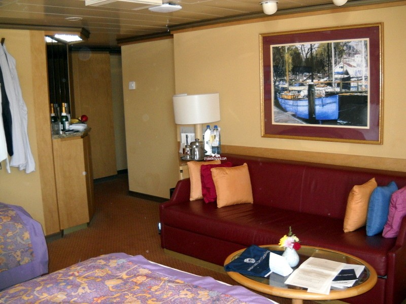 Concierge Service / Priority Check In / Priority Debarkation / Priority Tender Boarding / Afternoon Canapes / Afternoon Tea / Complimentary Shoe Shine / Welcome Champagne / Exclusive Lounge / Exclusive Full Breakfast Restaurant / Priority Dining Reservations / Complimentary Laundry / Thick Cotton Robes / Pillow Menu / Signature Mariner's Dream bed with plush euro-top mattress and finely woven cotton linens / Lighted magnifying mirrors / Massage showerheads / Salon-quality hair dryer / Elemis Aromapure bath products / Flat-panel TV and DVD player / complimentary DVD library / Personalized cruise stationary / Umbrella & binocular usage / Gorgeous corsages and boutonnieres for the first formal night / Cocktail party with ship's officers / Premium duvet / Complimentary bottled water at embarkation / Bose docking station / Complimentary mimosas with in-suite breakfast / In-suite coffee maker and espresso machine. /