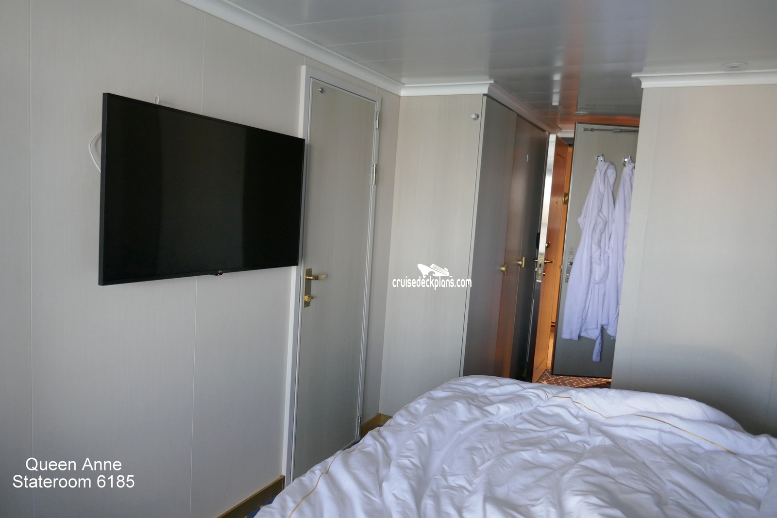 Scroll over cabin (stateroom) tiles below to click and watch actual stateroom videos of Queen Anne cabin 6185. You can choose to watch the videos right on this page, or click to watch them on YouTube (will open in new window). When you are done viewing these videos and/or the cabin pictures above, you can click here to select another cabin. The date shown below is the date video was published. Use this to see decor changes. Keep in mind that stateroom cabins are typically updated once every three to five years. To save you time, Cruisedeckplans.com will spend hours every week finding more actual stateroom videos on YouTube.