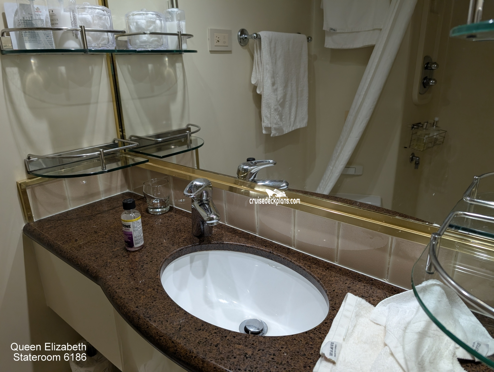 These are some actual stateroom pictures of cabin 6186 on the Queen Elizabeth. Click on images below for larger image and slide show. The slide show will show the date the picture was uploaded to out website. This date is useful because Queen Elizabeth typically will update its cabins every three to five years with new carpeting and decor. We will keep older pictures for you to compare the more recent photos to. The pictures are sorted by the newest ones first. Most of our cabin pictures are contributed by actual cruisers. We pay 50 cents for any that we use. You can upload your cabin photos HERE. Afer you are done looking at these photos and/or the videos below you can click here to select another cabin.