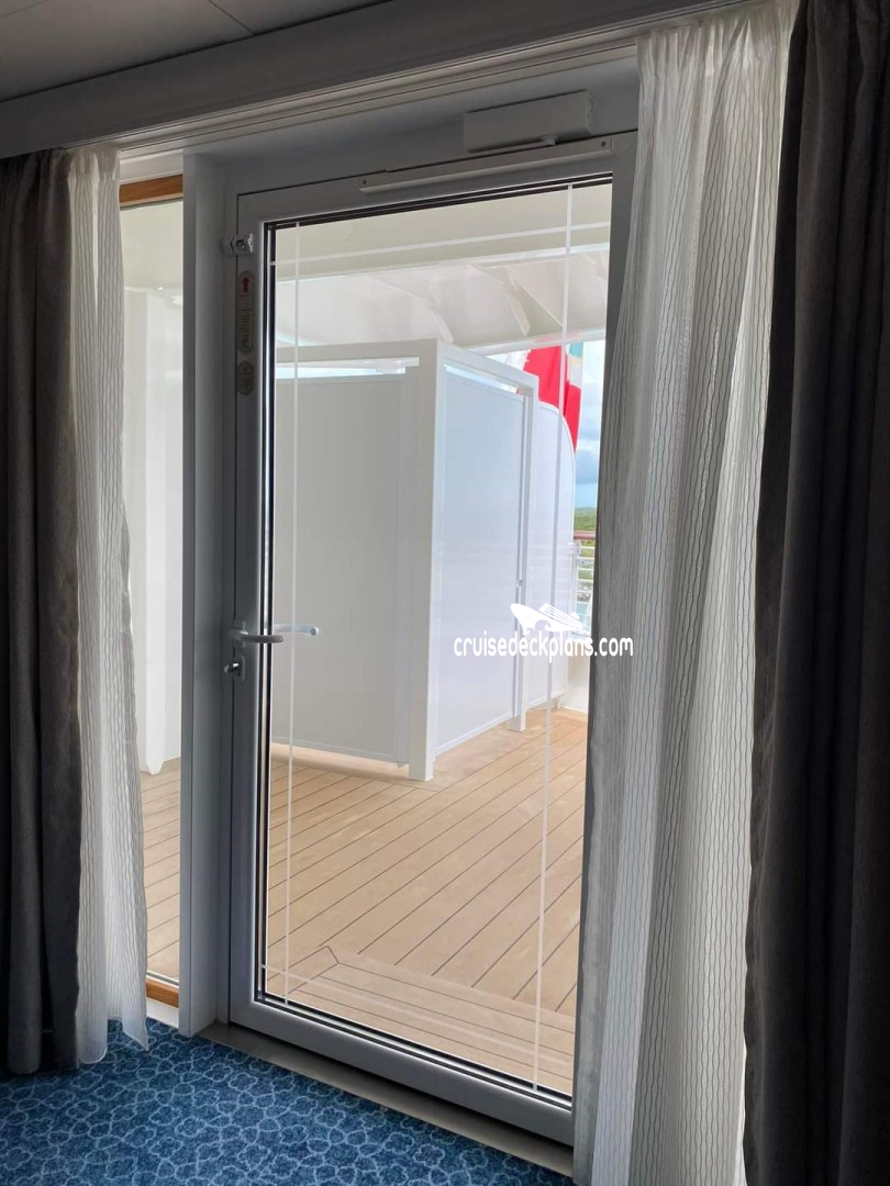 - Private balcony with patio furniture, deck lighting, plexiglas railings and dividers, childproof locks.