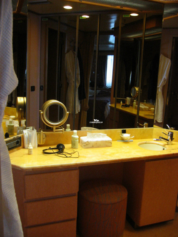 Concierge Service / Priority Check In / Priority Debarkation / Priority Tender Boarding / Afternoon Canapes / Afternoon Tea / Complimentary Shoe Shine / Welcome Champagne / Exclusive Lounge / Exclusive Full Breakfast Restaurant / Priority Dining Reservations / Complimentary Laundry / Thick Cotton Robes / Pillow Menu / Signature Mariner's Dream bed with plush euro-top mattress and finely woven cotton linens / Lighted magnifying mirrors / Massage showerheads / Salon-quality hair dryer / Elemis Aromapure bath products / Flat-panel TV and DVD player / complimentary DVD library / Personalized cruise stationary / Umbrella & binocular usage / Gorgeous corsages and boutonnieres for the first formal night / Cocktail party with ship's officers / Premium duvet / Complimentary bottled water at embarkation / Bose docking station / Complimentary mimosas with in-suite breakfast / In-suite coffee maker and espresso machine. /