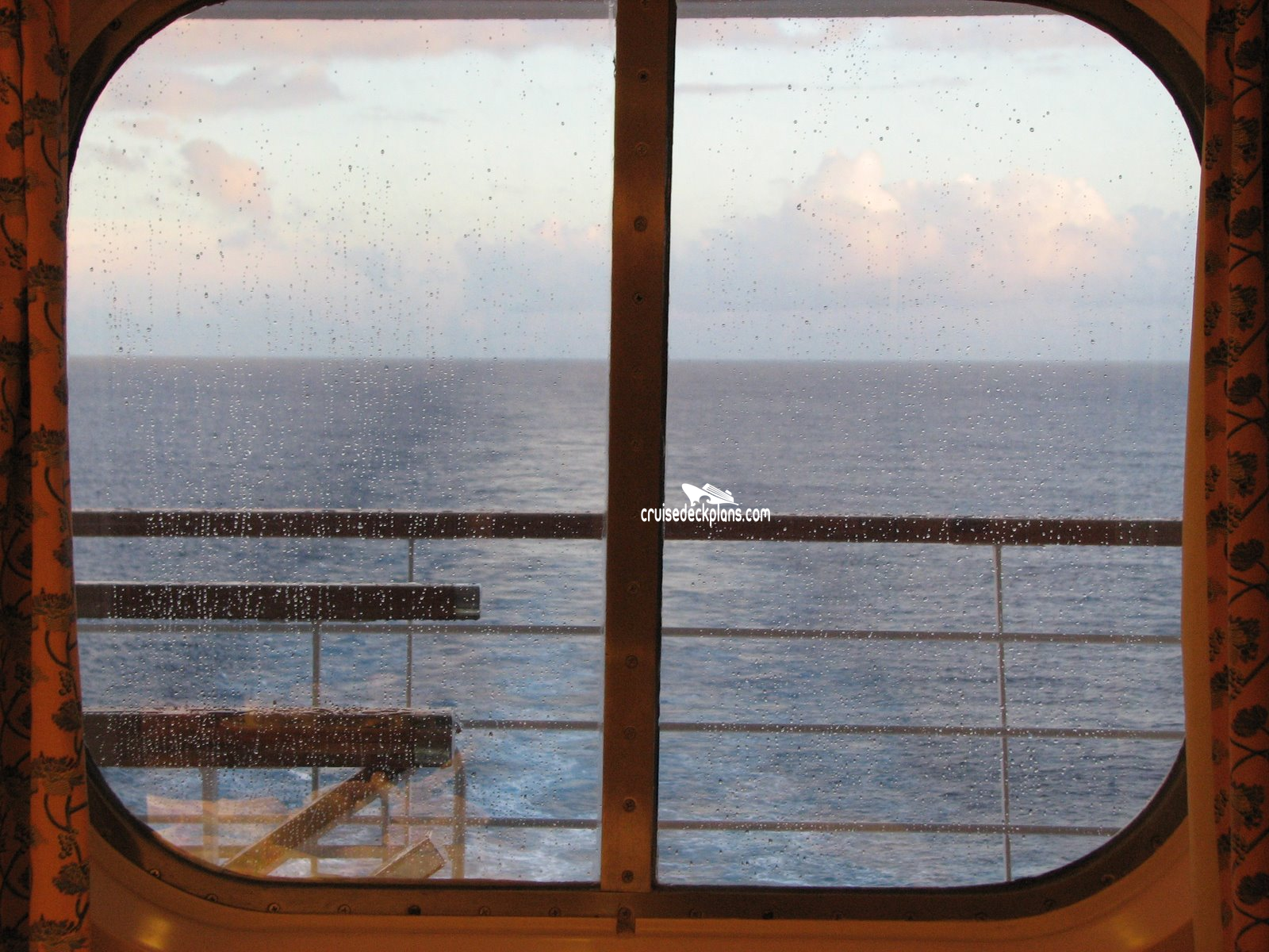 Category has two portholes. Category HH is fully obstructed. Category H is partially obstructed. Cabins on deck 3 have windows looking out onto promenade deck and people walking by can view into the cabin when lights are on in cabin. Category CA were oceanview converted to Lanai Staterooms in December 2014. Category CA has a sliding glass door that leads out to promenade deck.