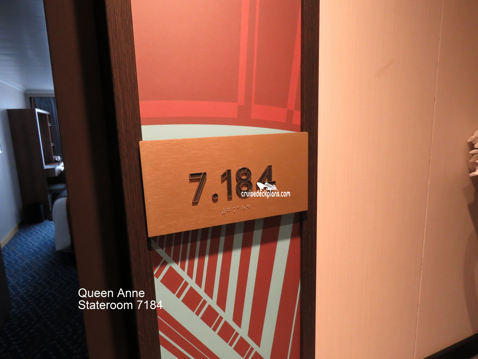Scroll over cabin (stateroom) tiles below to click and watch actual stateroom videos of Queen Anne cabin 7184. You can choose to watch the videos right on this page, or click to watch them on YouTube (will open in new window). When you are done viewing these videos and/or the cabin pictures above, you can click here to select another cabin. The date shown below is the date video was published. Use this to see decor changes. Keep in mind that stateroom cabins are typically updated once every three to five years. To save you time, Cruisedeckplans.com will spend hours every week finding more actual stateroom videos on YouTube.