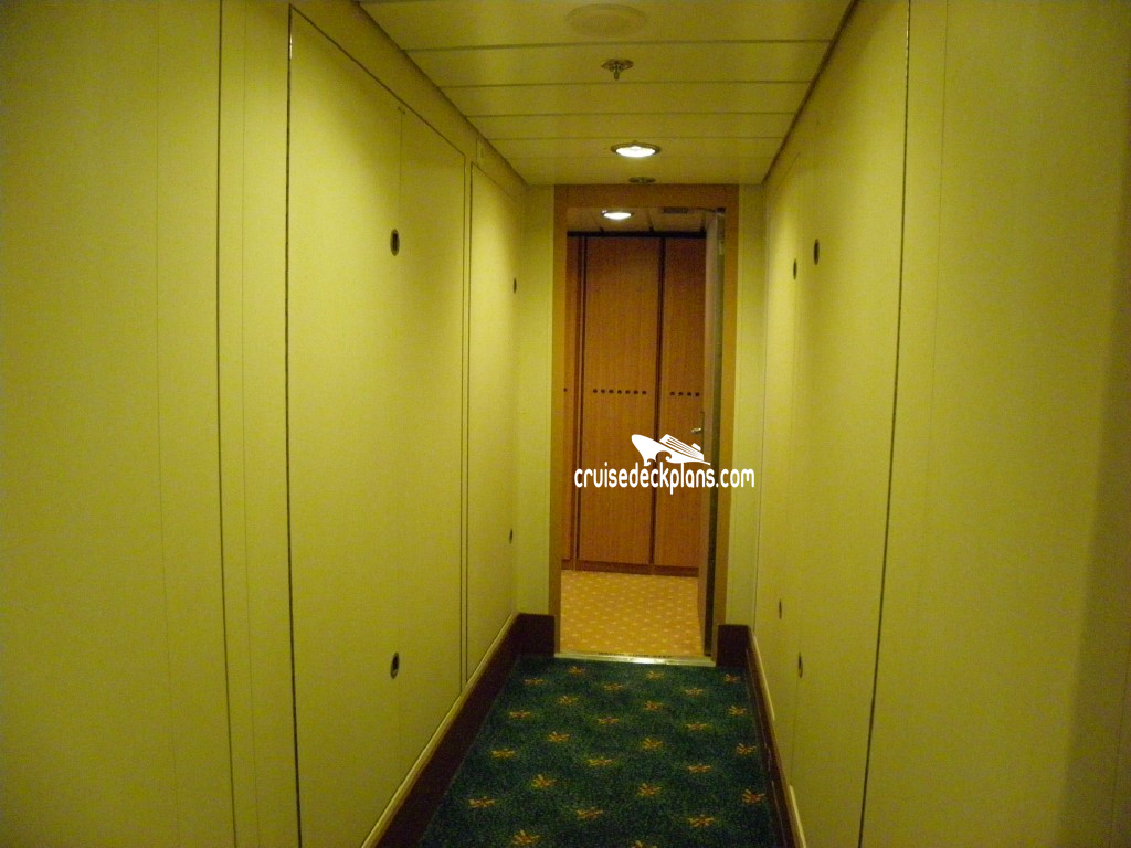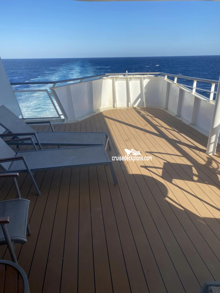 - NOTE: Corner cabins have mostly solid metal balcony walls.