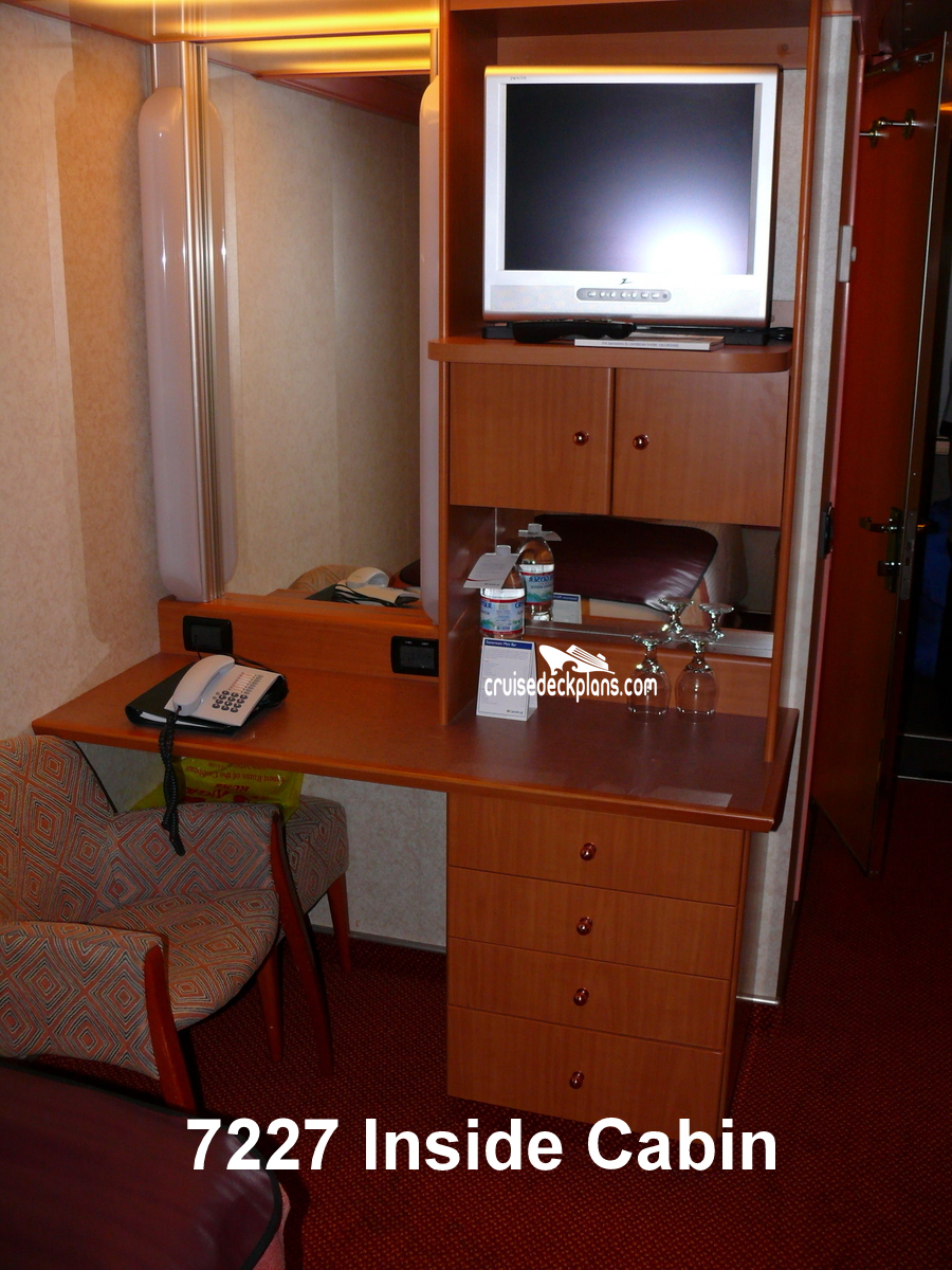 Carnival Freedom Interior cabin number 7227 ACTUAL videos and/or pictures, floor plans, diagrams and detailed features including a deck image of the actual location on the Carnival Freedom ship for cabin 7227. Cruisedeckplans.com has 75,911 different (staterooms) cabins that have actual cabin pictures and/or cabin videos taken by real cruisers. That is plenty of coverage to provide you with a good sampling of all the different cabins on cruise ships. Take a minute and notice the breadcrumb menu above. This is a quick easy way to navigate our website. You can also use the menu above for menu items specific to the Carnival Freedom cruise ship.