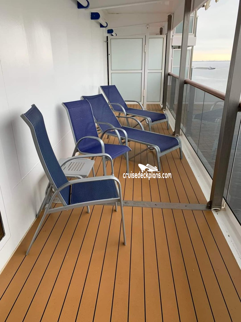 Cabin 7A is partially obstructed. Some balconies extended to 60 square feet or more.