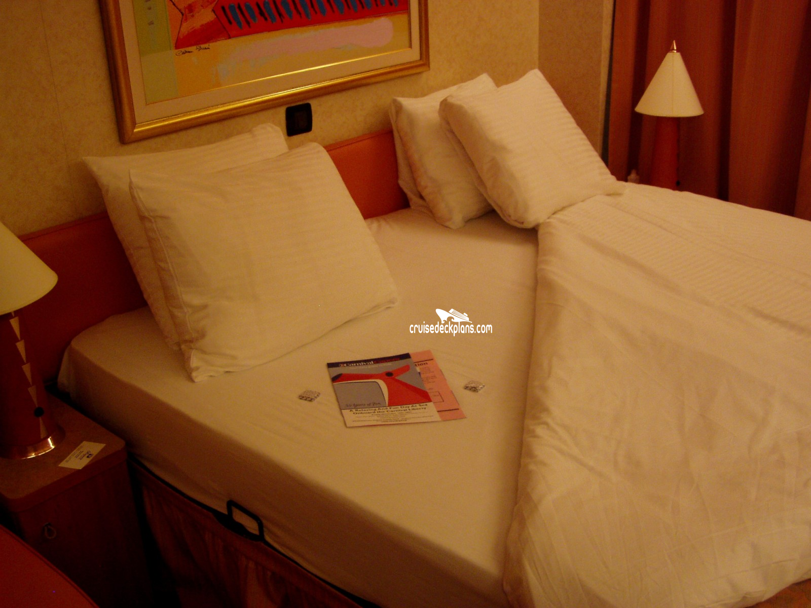These are some actual stateroom pictures of cabin 7334 on the Carnival Liberty. Click on images below for larger image and slide show. The slide show will show the date the picture was uploaded to out website. This date is useful because Carnival Liberty typically will update its cabins every three to five years with new carpeting and decor. We will keep older pictures for you to compare the more recent photos to. The pictures are sorted by the newest ones first. Most of our cabin pictures are contributed by actual cruisers. We pay 50 cents for any that we use. You can upload your cabin photos HERE. Afer you are done looking at these photos and/or the videos below you can click here to select another cabin.