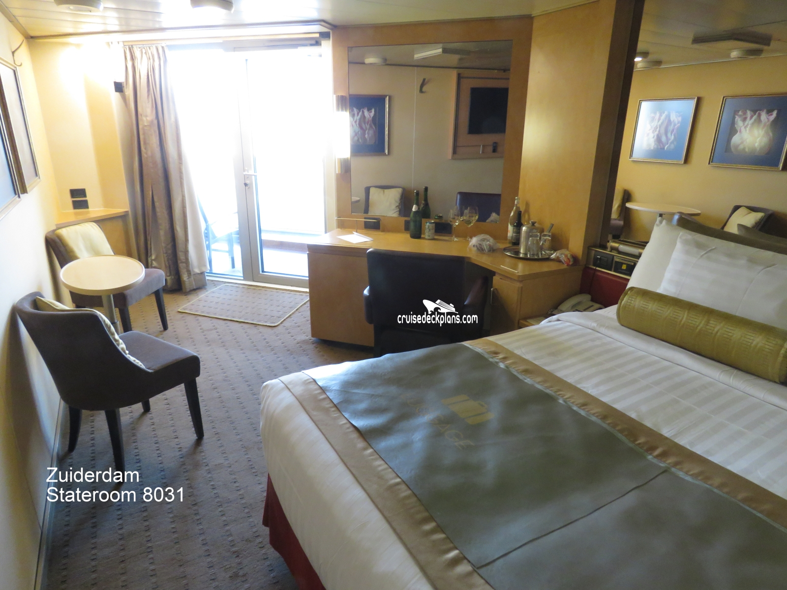 Zuiderdam Verandah cabin number 8031 ACTUAL videos and/or pictures, floor plans, diagrams and detailed features including a deck image of the actual location on the Zuiderdam ship for cabin 8031. Cruisedeckplans.com has 72,924 different (staterooms) cabins that have actual cabin pictures and/or cabin videos taken by real cruisers. That is plenty of coverage to provide you with a good sampling of all the different cabins on cruise ships. Take a minute and notice the breadcrumb menu above. This is a quick easy way to navigate our website. You can also use the menu above for menu items specific to the Zuiderdam cruise ship.