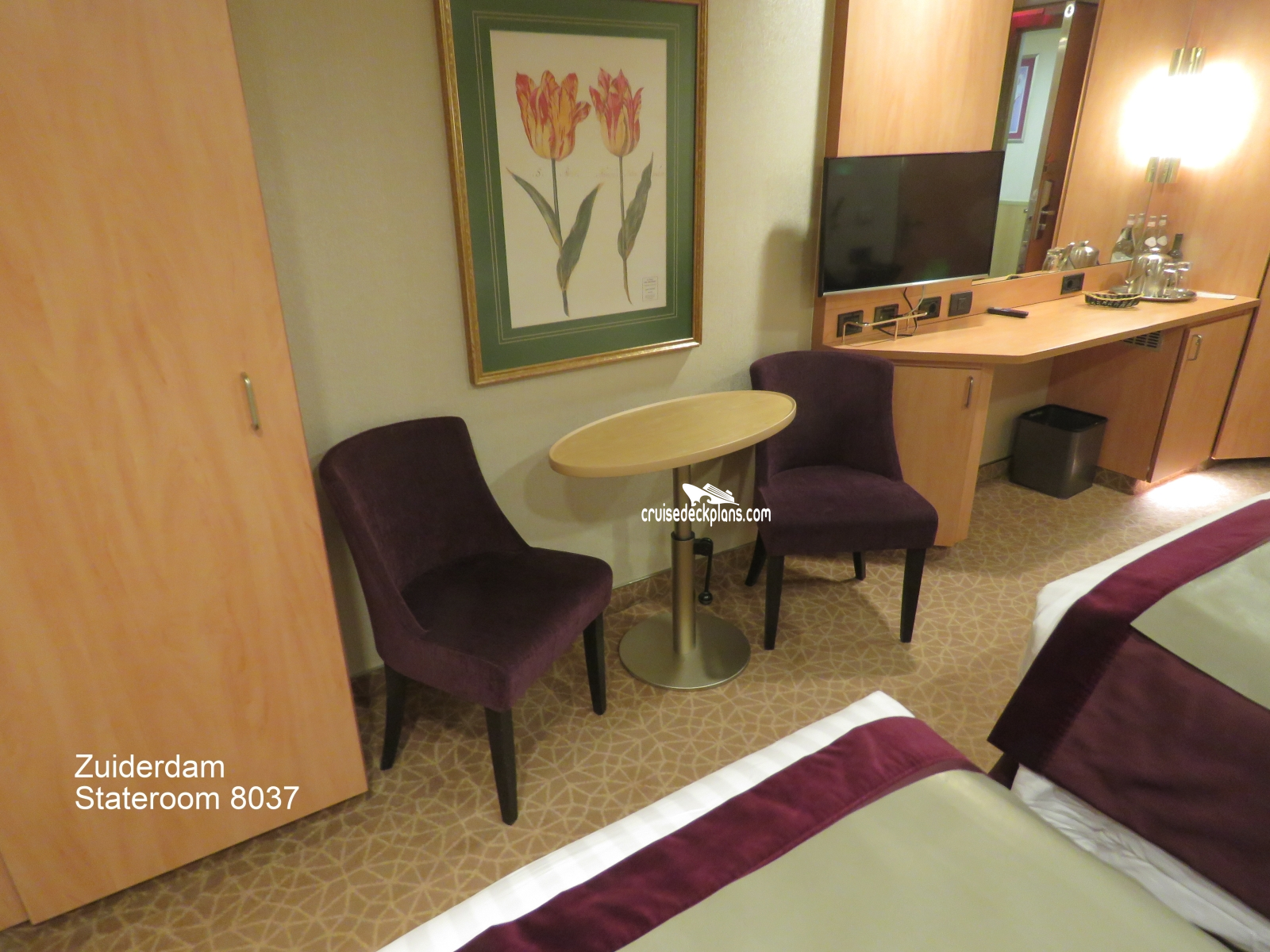 Zuiderdam Interior cabin number 8037 ACTUAL videos and/or pictures, floor plans, diagrams and detailed features including a deck image of the actual location on the Zuiderdam ship for cabin 8037. Cruisedeckplans.com has 72,924 different (staterooms) cabins that have actual cabin pictures and/or cabin videos taken by real cruisers. That is plenty of coverage to provide you with a good sampling of all the different cabins on cruise ships. Take a minute and notice the breadcrumb menu above. This is a quick easy way to navigate our website. You can also use the menu above for menu items specific to the Zuiderdam cruise ship.