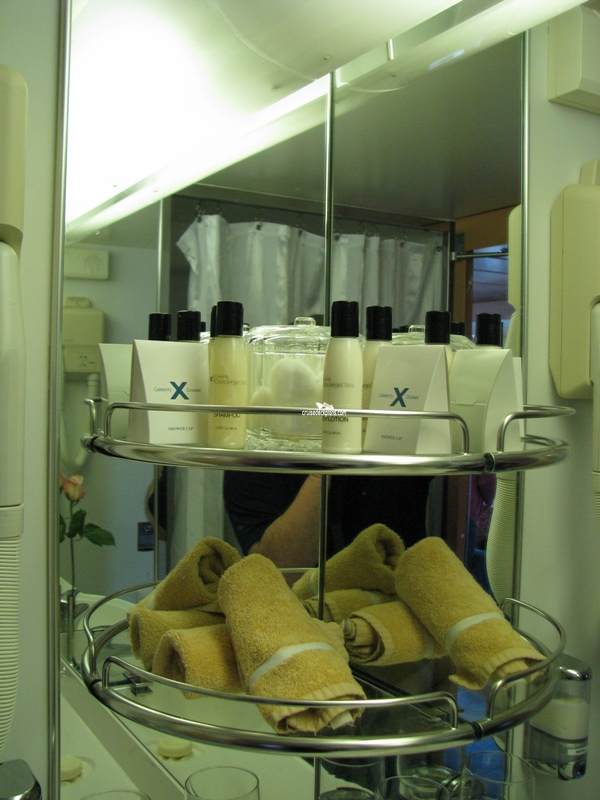 Concierge Service / Priority Check In / Priority Luggage Delivery / Priority Debarkation / Afternoon Canapes / Complimentary Shoe Shine / Welcome Champagne / Priority Dining Reservations / Thick Cotton Robes / Pillow Menu / Celebrity eXhale custom premium mattresses / Interactive Samsung flat-screen television system / Complimentary tote bag / Upgraded room service menu / Use of binoculars and golf umbrella / Hansgrohe massaging shower-head / Access to the exclusive Concierge Class Pre-departure Lounge / Extra hand-held hair dryer / NEW dedicated onboard concierge desk, concierge service available during check in, exclusive destination seminar, exclusive welcome aboard lunch in main dining room from 11:30 to 1:00 p.m. /