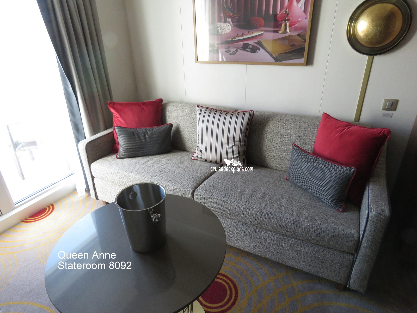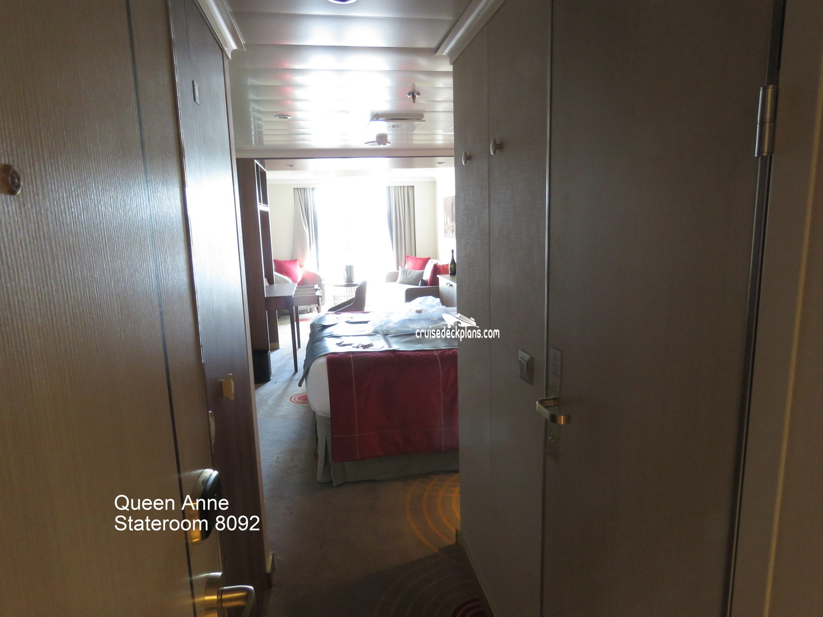 Queen Anne Princess Suite cabin number 8092 ACTUAL videos and/or pictures, floor plans, diagrams and detailed features including a deck image of the actual location on the Queen Anne ship for cabin 8092. Cruisedeckplans.com has 74,582 different (staterooms) cabins that have actual cabin pictures and/or cabin videos taken by real cruisers. That is plenty of coverage to provide you with a good sampling of all the different cabins on cruise ships. Take a minute and notice the breadcrumb menu above. This is a quick easy way to navigate our website. You can also use the menu above for menu items specific to the Queen Anne cruise ship.