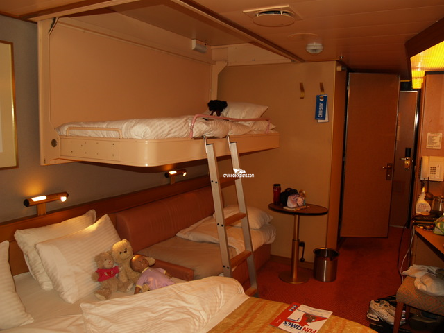 These are some actual stateroom pictures of cabin 8343 on the Carnival Triumph. Click on images below for larger image and slide show. The slide show will show the date the picture was uploaded to out website. This date is useful because Carnival Triumph typically will update its cabins every three to five years with new carpeting and decor. We will keep older pictures for you to compare the more recent photos to. The pictures are sorted by the newest ones first. Most of our cabin pictures are contributed by actual cruisers. We pay 50 cents for any that we use. You can upload your cabin photos HERE. Afer you are done looking at these photos and/or the videos below you can click here to select another cabin.