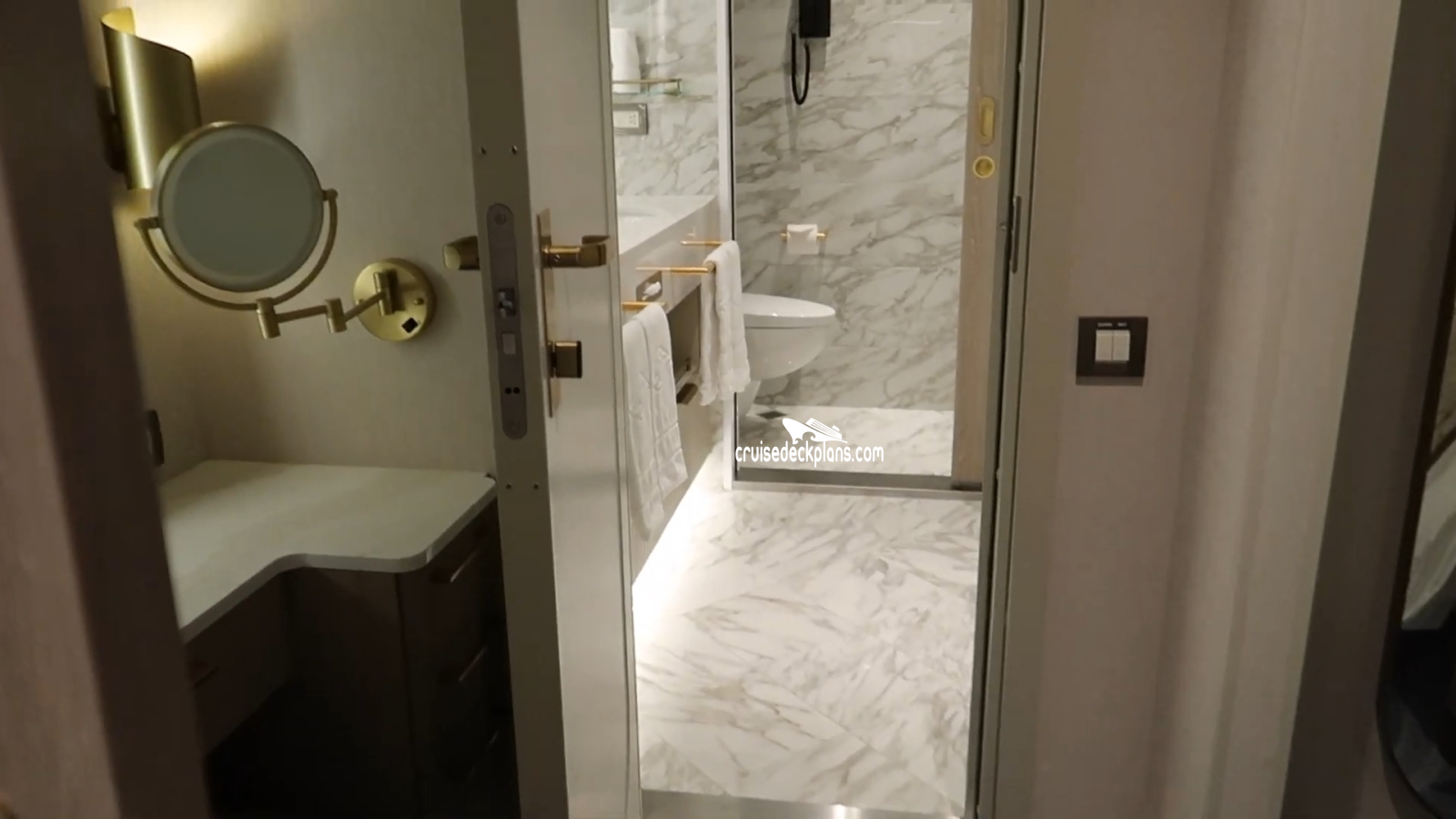 Concierge Service / Priority Check In / Priority Tender Boarding / Dining in the Stateroom / Exclusive Lounge / Priority Dining Reservations / Exclusive Outdoor Lounge / Thick Cotton Robes / Pillow Menu / Sealy Posturepedic Euro-top mattress / Frette 100% Egyptian cotton linens / 2 LCD 42 inch HD flat screen Tvs / Ipod docking station / Enhanced line of H20 Plus spa products / Media library / Pre-arrival concierge services /
