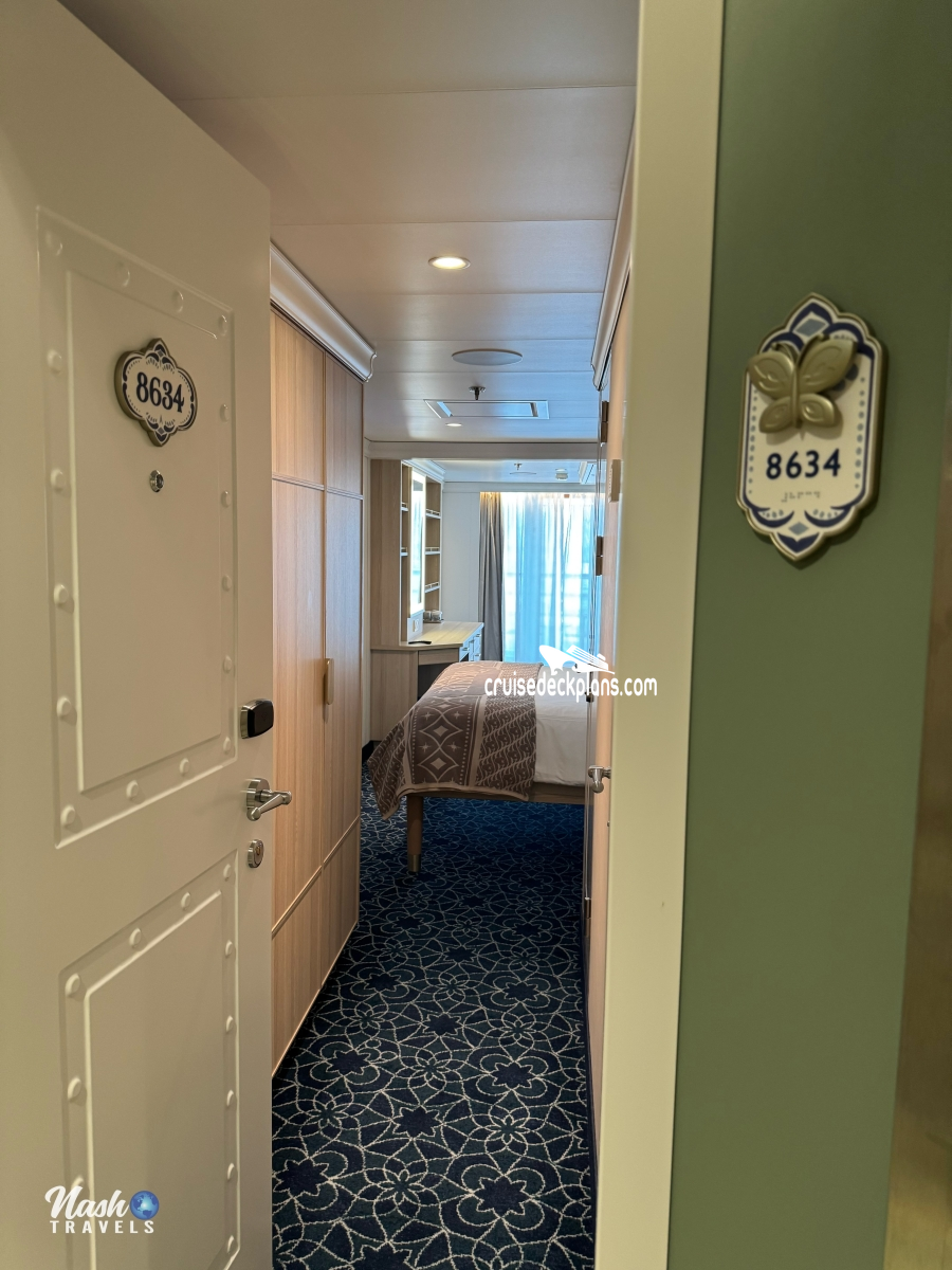 Disney Treasure Deluxe Family Verandah cabin number 8634 ACTUAL videos and/or pictures, floor plans, diagrams and detailed features including a deck image of the actual location on the Disney Treasure ship for cabin 8634. Cruisedeckplans.com has 75,451 different (staterooms) cabins that have actual cabin pictures and/or cabin videos taken by real cruisers. That is plenty of coverage to provide you with a good sampling of all the different cabins on cruise ships. Take a minute and notice the breadcrumb menu above. This is a quick easy way to navigate our website. You can also use the menu above for menu items specific to the Disney Treasure cruise ship.