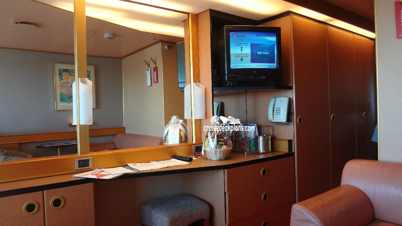 These are some actual stateroom pictures of cabin 9210 on the Carnival Triumph. Click on images below for larger image and slide show. The slide show will show the date the picture was uploaded to out website. This date is useful because Carnival Triumph typically will update its cabins every three to five years with new carpeting and decor. We will keep older pictures for you to compare the more recent photos to. The pictures are sorted by the newest ones first. Most of our cabin pictures are contributed by actual cruisers. We pay 50 cents for any that we use. You can upload your cabin photos HERE. Afer you are done looking at these photos and/or the videos below you can click here to select another cabin.