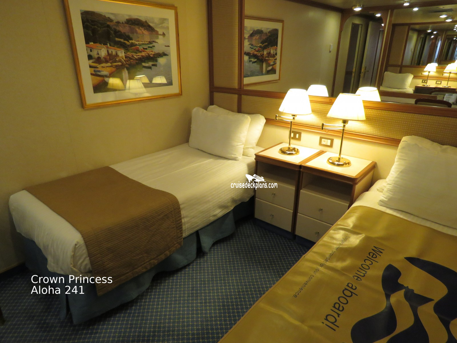 Crown Princess Interior cabin number A241 ACTUAL videos and/or pictures, floor plans, diagrams and detailed features including a deck image of the actual location on the Crown Princess ship for cabin A241. Cruisedeckplans.com has 75,098 different (staterooms) cabins that have actual cabin pictures and/or cabin videos taken by real cruisers. That is plenty of coverage to provide you with a good sampling of all the different cabins on cruise ships. Take a minute and notice the breadcrumb menu above. This is a quick easy way to navigate our website. You can also use the menu above for menu items specific to the Crown Princess cruise ship.