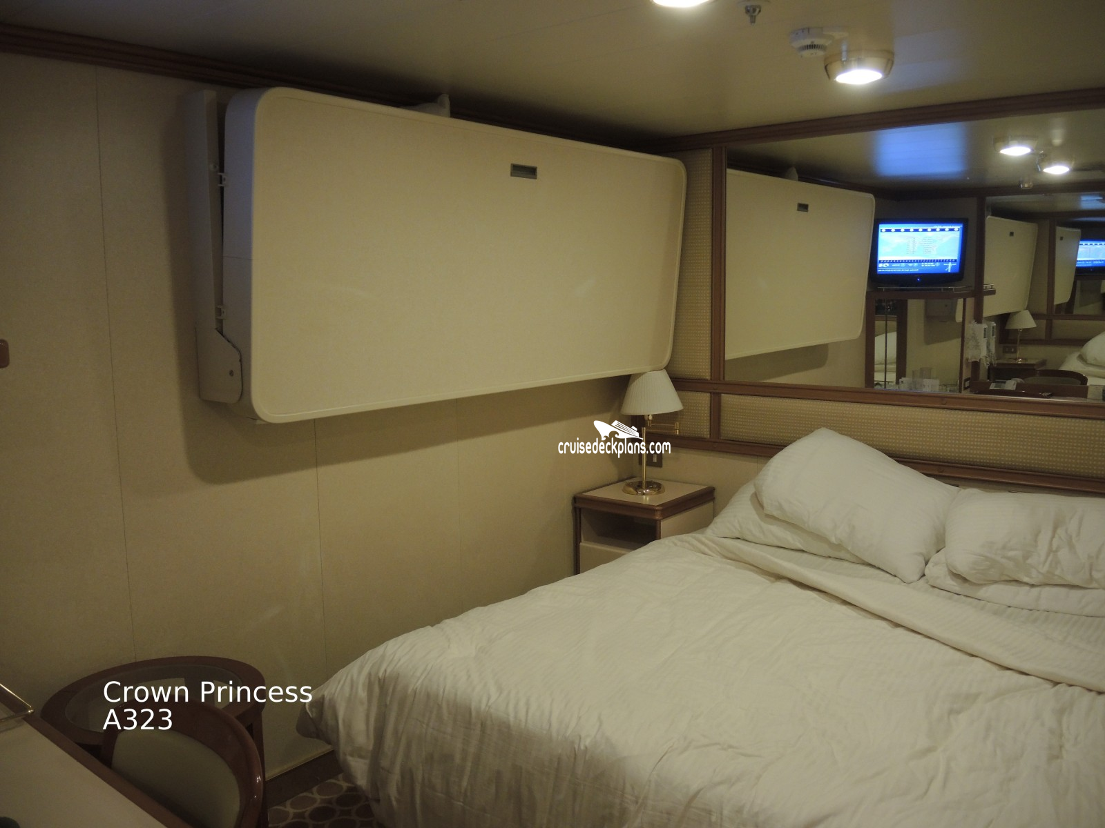 Crown Princess Interior cabin number A323 ACTUAL videos and/or pictures, floor plans, diagrams and detailed features including a deck image of the actual location on the Crown Princess ship for cabin A323. Cruisedeckplans.com has 74,804 different (staterooms) cabins that have actual cabin pictures and/or cabin videos taken by real cruisers. That is plenty of coverage to provide you with a good sampling of all the different cabins on cruise ships. Take a minute and notice the breadcrumb menu above. This is a quick easy way to navigate our website. You can also use the menu above for menu items specific to the Crown Princess cruise ship.