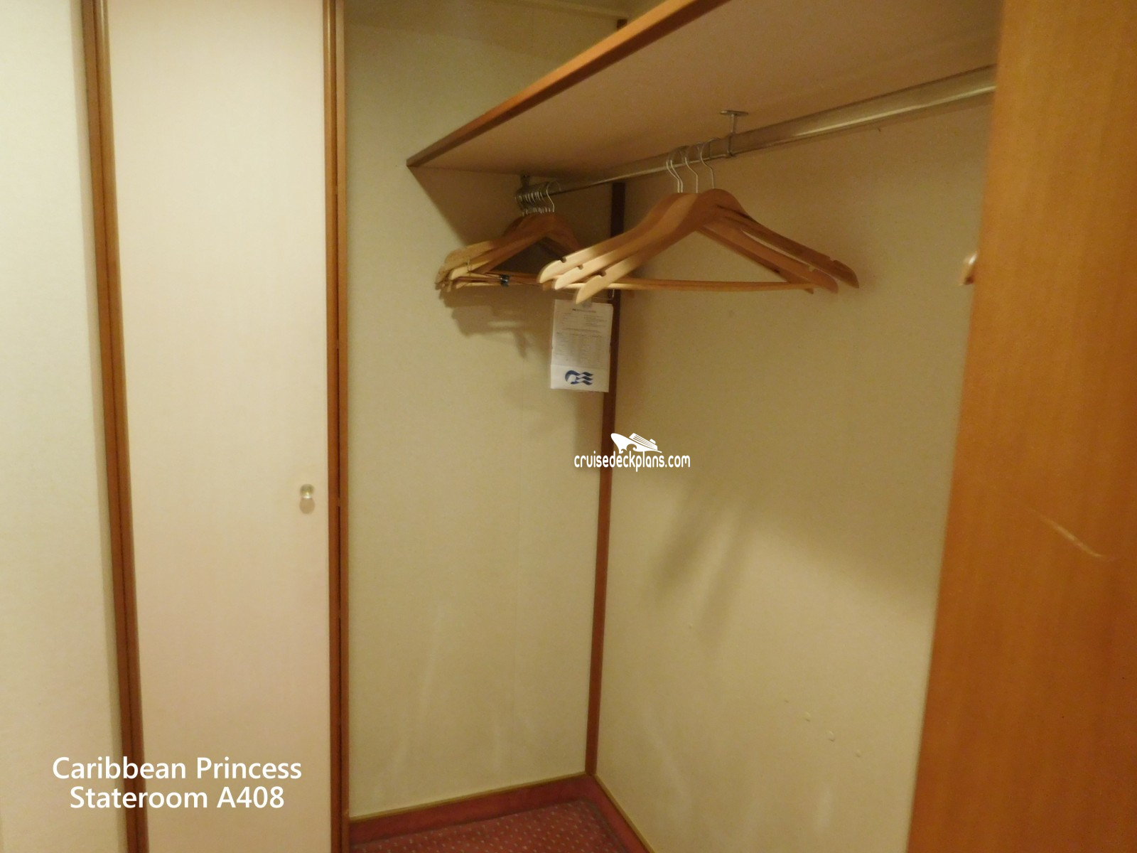 Caribbean Princess Interior cabin number A408 ACTUAL videos and/or pictures, floor plans, diagrams and detailed features including a deck image of the actual location on the Caribbean Princess ship for cabin A408. Cruisedeckplans.com has 74,709 different (staterooms) cabins that have actual cabin pictures and/or cabin videos taken by real cruisers. That is plenty of coverage to provide you with a good sampling of all the different cabins on cruise ships. Take a minute and notice the breadcrumb menu above. This is a quick easy way to navigate our website. You can also use the menu above for menu items specific to the Caribbean Princess cruise ship.