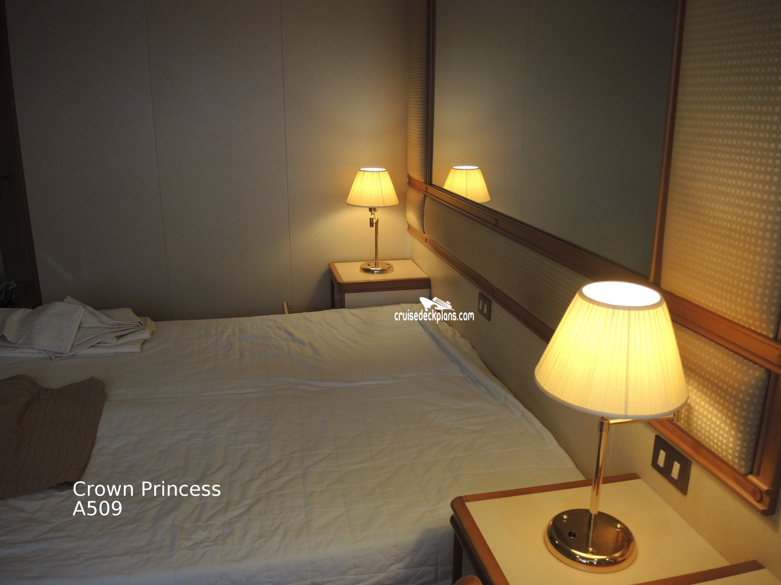 These are some actual stateroom pictures of cabin A509 on the Crown Princess. Click on images below for larger image and slide show. The slide show will show the date the picture was uploaded to out website. This date is useful because Crown Princess typically will update its cabins every three to five years with new carpeting and decor. We will keep older pictures for you to compare the more recent photos to. The pictures are sorted by the newest ones first. Most of our cabin pictures are contributed by actual cruisers. We pay 50 cents for any that we use. You can upload your cabin photos HERE. Afer you are done looking at these photos and/or the videos below you can click here to select another cabin.